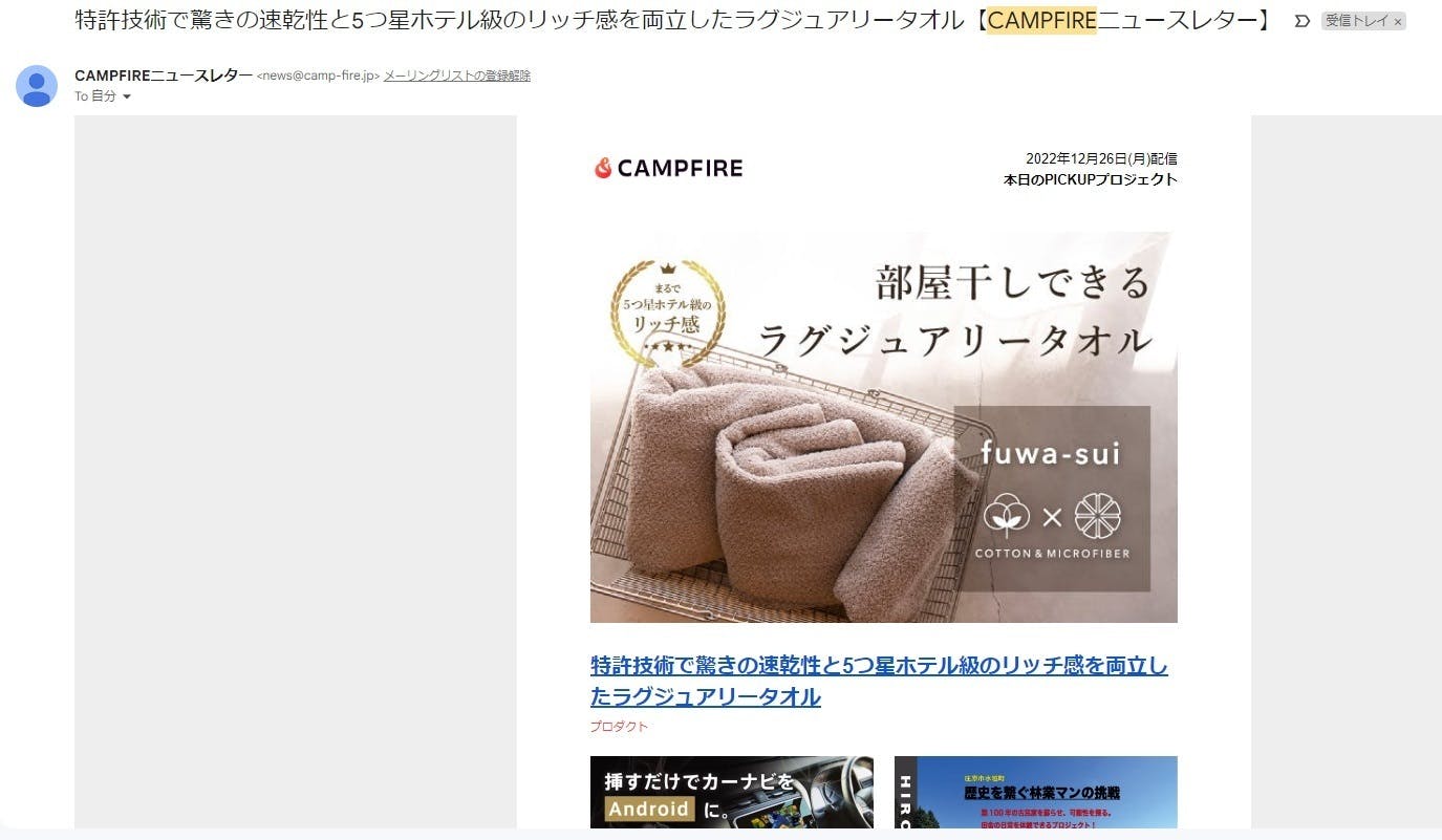 本日最も注目されているプロジェクトとしてCAMPFIREのメールマガジンに取り上げて頂きました!