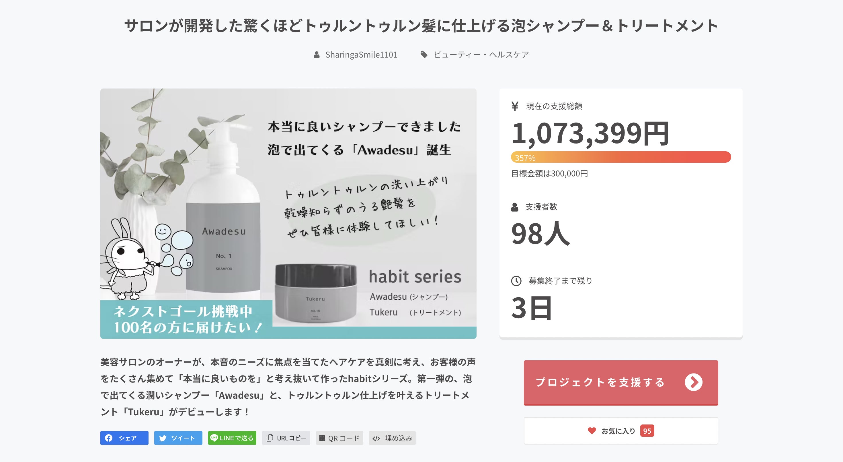 2023/01/24 17:13皆さんこんにちは。今回の投稿はお礼を言わせて頂こうとおもいキーボードをカタカタとしています。まずは先日まで行われておりました、クラウドファンディングがネクストゴールまで達成でき、無事成功として終えたことを心より感謝申し上げます。思い返せばhabitシリーズの考案から開発、制作、完成、クラウドファンディング、そして今やっと辿り着いたスタートライン、、、あっという間のような長いような時間でした。今回1番満足しているのはクラウドファンディングに取り組みご支援をいただき応援していただきながらも、皆様に僕たちの想いを伝えたい届けたいという想いが変わらなかったことです。支援者が増えると嬉しかったのは事実です、しかし1番大切なのは、お客様の想いを聞き取り僕たちがサロンで感じ、そしてカタチになったhabitが一人でも多くの方のバスタイムのストレスを無くすと思うと毎日が楽しくて仕方ありませんでした、想いが届くことの嬉しさを現場とは違う角度で皆様に教えていただきました、本当に感謝しています。もうしばらくすると予定通り皆様のお手元にhabitが届くとおもいます。そこで勝手ながら皆さんに一つお願いがあります。実は僕たちが住み暮らす「指宿(いぶすき)」という街は、本土最南端の町で砂風呂や薩摩富士と呼ばれる開聞岳、海や湖など自然も楽しめる観光地です。しかし、長引くコロナ禍で観光業は大ダメージを負いました。お客様と話していても前向きな話は減り、どこか田舎感の加速をも感じておりました。そこで、何か元気が出る取り組みで指宿でもまだまだできることがあるよ!とにかくなんでもやろう、指宿という田舎でもやればできるよ!とりあえず僕たちがやってみせるから!という取り組む一つのきっかけがありました。もし商品が届いてお気に召してくださったときはSNSで 「#指宿」 をつけて発信していただけませんでしょうか、本来なら商品名つけて投稿してくださいなのでしょうし、もちろん欲を言えばそれもお願いしますと言いたいところです。うちみたいな小さいサロンが街のために何かするというのはとても難しいことです。今、まちの雰囲気は活気が不足して決して良い状況ではありません、やる気や元気なども何かコロナ前よりも劣っているように個人的には感じています。でも自分ができることを誰かの力を借りながらでも精一杯やれば結果も出るし、新しい挑戦もどこでも誰でもできる、指宿市の名前が皆様の目に入る機会が増えればまた指宿はきっと元気になる、違う角度からでも話題に上がる!そんなことを思って取り組んできた取り組みでもあります。なので、habitが届きましたらぜひ、指宿在住の皆さんはもちろん、そうでない方も販売元の住所を見て、こんな小さなどこかわからないようなところの会社でもできたならとりあえず明日から、今日からなんかやってみるか、っていうような元気に変えてもらえたらなっておもっています。本来ならシンプルにお礼を伝えればいいことを、ずいぶん長々と生意気いうような文章になりましたが、是非クラファン最後のワガママとしてお願いしたいと思っております。最後になりましたが今後このhabitシリーズを使い続けていきたいと思った際はhair station uluruTotal Beauty Station RunRunそしてまもなく使えるようになりますこちらのサイトからご購入できる準備を進めております。こちらもご活用いただければ嬉しいです。今後ともhabitを通じて一人でも多くの方のバスタイムからストレスがなくなることを望んでいます、本当にありがとうございました。(株)Sharing a smile スタッフ一同 もっと見る