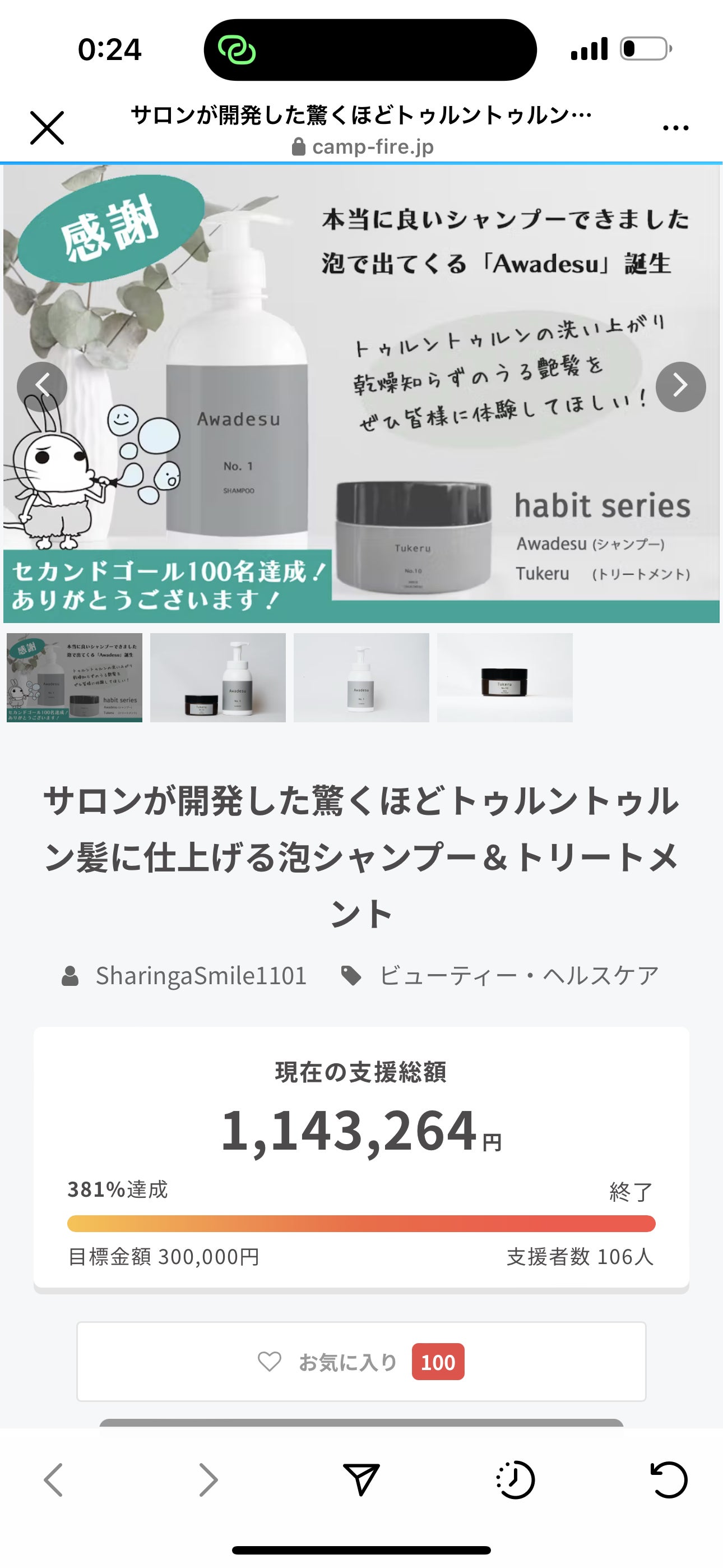 2023/01/17 19:25皆様のおかげで楽しませていただいたクラファン期間も終わろうとしています、皆様には心より感謝申し上げます。さて、実は途中で立てましたネクストゴールまであとお2人様となりました!残り3日でお2人様、、、終盤でクラファンの醍醐味を味わわせていただいています。1度ご支援いただいた方からの追加注文も数名様いただいておりまして、ありがたさを感じております。実は追加注文のお問い合わせが数名様他にもありましたのでこのようなセットを準備させていただきました!ただせっかくなので同日にこのような形でのご提案もさえていただいております。いいですねークラファンぽくていいですねー。ということで残り3日、終了まで文章としてのご案内は最後となるかと思います。このシャンプーセットはギフトなどでも喜ばれると思いますので備考欄に別の場所への配送をお書きになられても構いません。ぜひhabitシリーズが一人でも多くの方に届くことを願っています。ちなみに今日はリーフレットも完成しました。皆様にも後日お渡しできると思いますのでそちらも楽しみにされてください!では! もっと見る