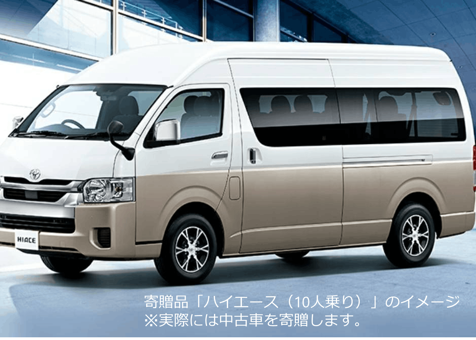 ●寄贈するもの:ハイエース(10人乗り)の中古車1台
