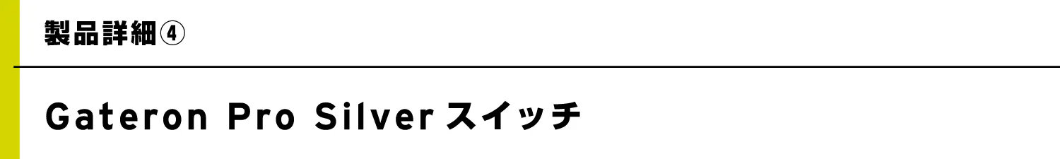 キースイッチの交換に対応しているので、お好みのスイッチに変更可能。出荷時にはGateron Pro Silverを搭載済みでお届けいたします。