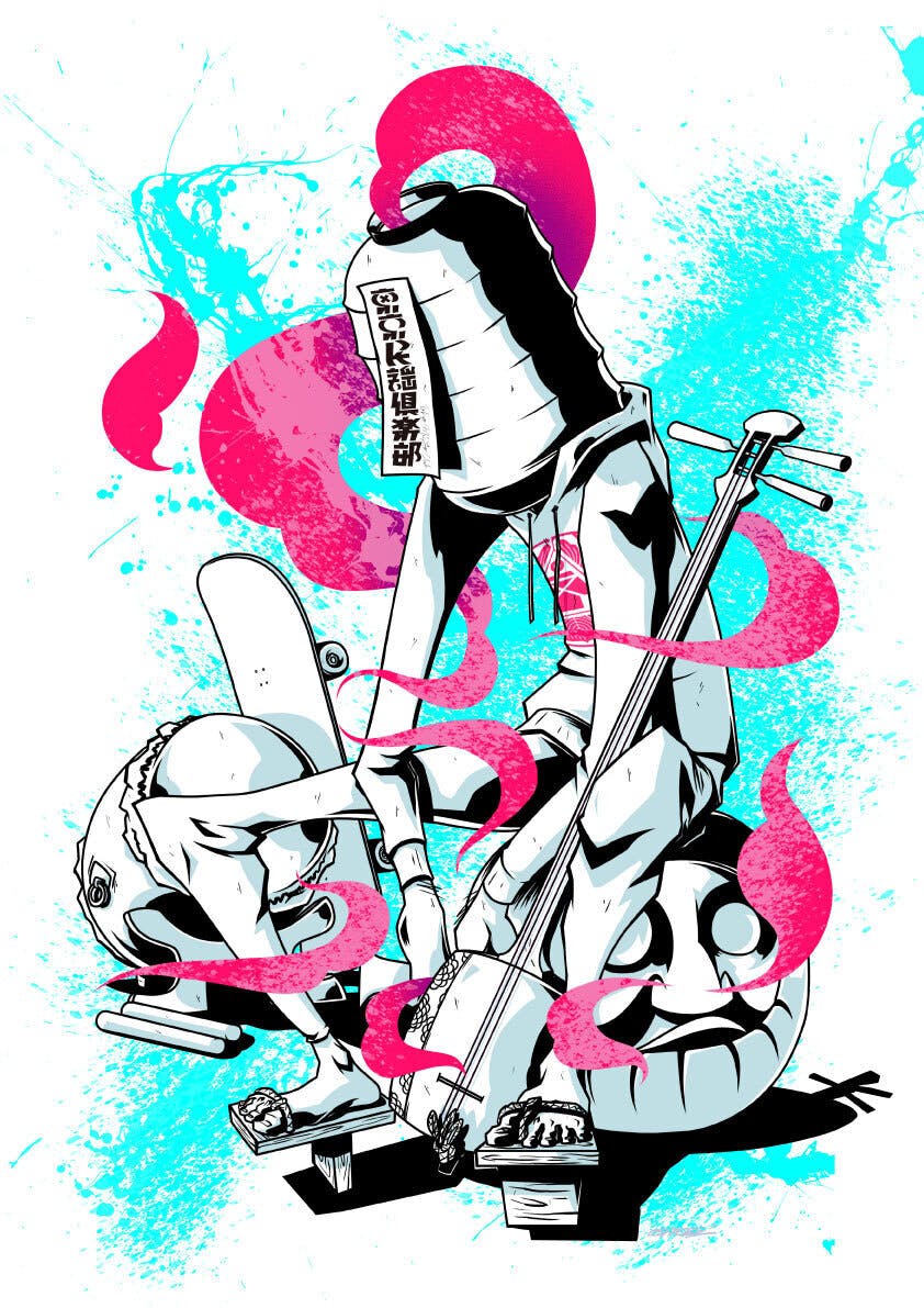 2022/12/22 11:55いよいよ今年も残すところ10日。東京民謡倶楽部のクラウドファンディングにご支援頂き誠にありがとうございます。師走の慌ただしいなか皆さんはいかがお過ごしですか?そういえば「東京民謡倶楽部はコミュニティである」というコンセプトの中には音楽だけではなく様々な表現方法で日本の文化をアップデートしていくという流れがありますが、まさにそのコンセプトの権化といいましょうか、東京民謡倶楽部には欠かせない一人のアーティストがいます。彼の名は「Alexandre Osmoze Brakha」(略:alex)。Alexはフランス生まれ。クリエイティブディレクション・イラストライター・アニメーターとして活躍するアーティストです。Alexの作品を見たときに皆さんどんな感覚になりましたか?筆者はどことなく懐かしく日本のアニメにとても影響を受けているように思えたり、対極にストリートアートの感覚も入り混じったり、サイバーパンク・ディストピア・マッドマックス感・ヒップホップ文化などなど常にカオスな感覚を覚えました。まさかそんなクロスオーバーなAlexが東京民謡倶楽部の新作「東獅子」のMVを監督するとどうなるのか?まさに日本の文化「民謡」をアップデートしたスタイルと「ストリートアート」が融合する我々の想像を超えた素晴らしい作品に仕上がってしまっています。様々な文化“と”融合する知的生命集団東京民謡倶楽部は「民謡」という日本古来の音楽を軸に様々な文化と融合する知的生命集団であるのですが、このAlexとの出会いはまた一つの次元が広がった瞬間でありまた、Alexが作り出す世界が東京民謡倶楽部が作り出す音楽に影響を与えているのだと思います。そんなAlexandre Osmoze Brakhaが「東京民謡倶楽部」そのものを今現在どのように感じているのか?そんなアンサー的なアートが今回のリターンでもあるアートポスターとして20名の方限定で出品されました。Alexandre Osmoze Brakhasize:A3(297×420mm )collar:Vivid ColorsLimited Edition(1~20)是非この機会に唯一無二のこの世界観を手に入れてください もっと見る