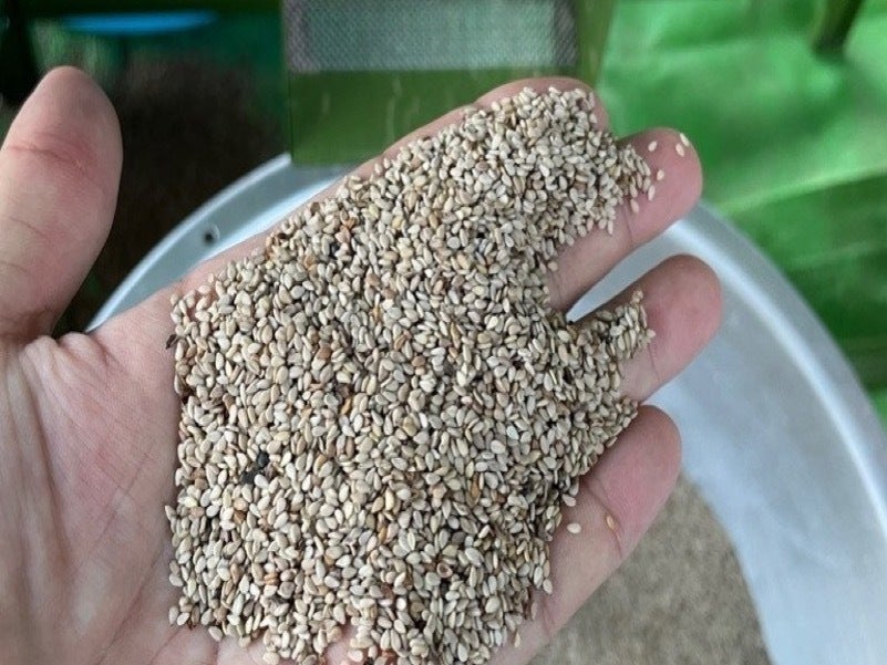 播種から90~100日で収穫できます。喜界島産の白ごまはやや小粒で香りが高いのが特徴です。