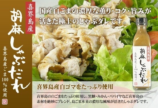 今回私たちが新商品として提案させていただくのは、紬美人シリーズ第2弾となる『喜界島産白ごま』をふんだんに使用した『胡麻特選セット』の「ゆたさ島ごまのしゃぶだれ」と「ほうらさ島ごまのドレッシング」、「はばさ島みかんの焼肉たれ」です。