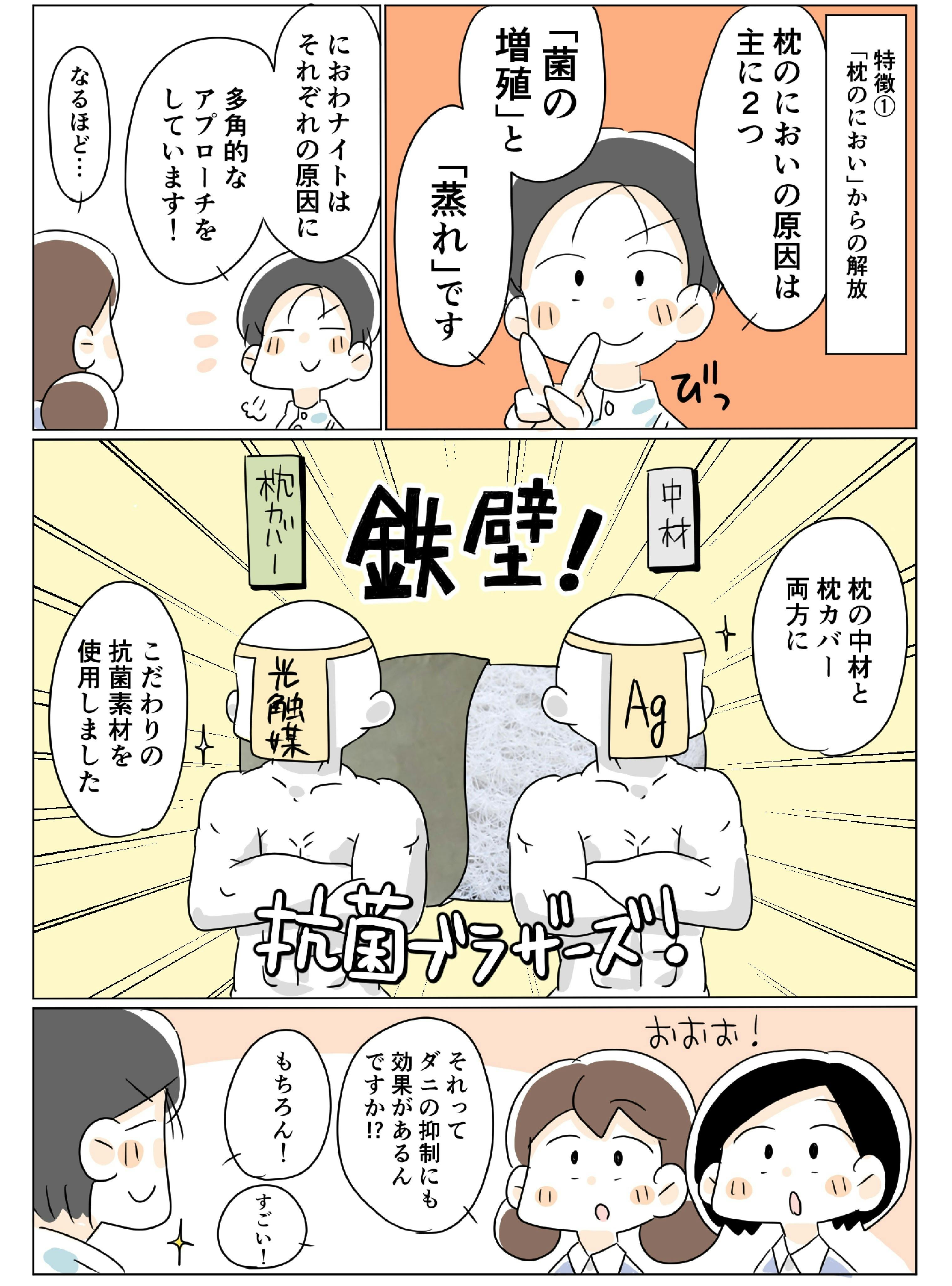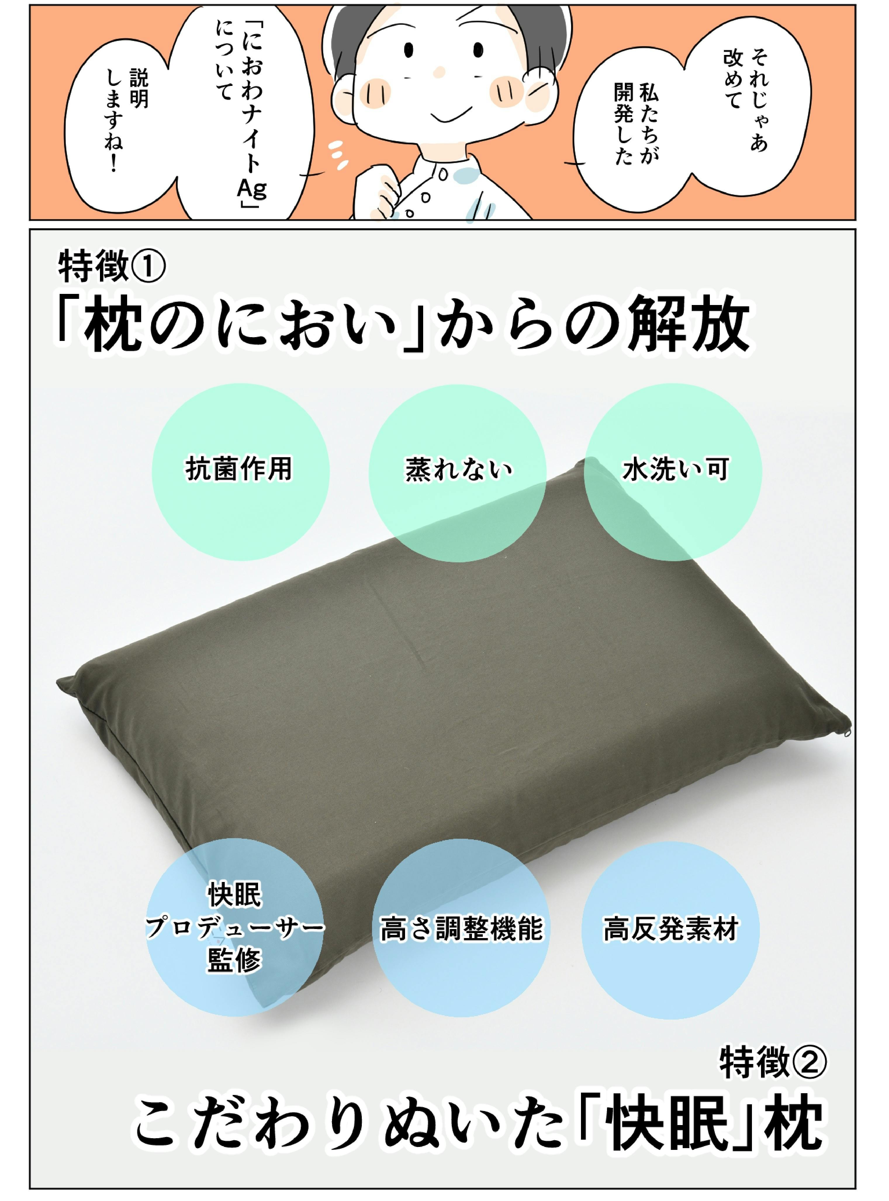 Q1. 洗える抗菌快眠枕「にわおナイトAg」の特徴を教えてください。