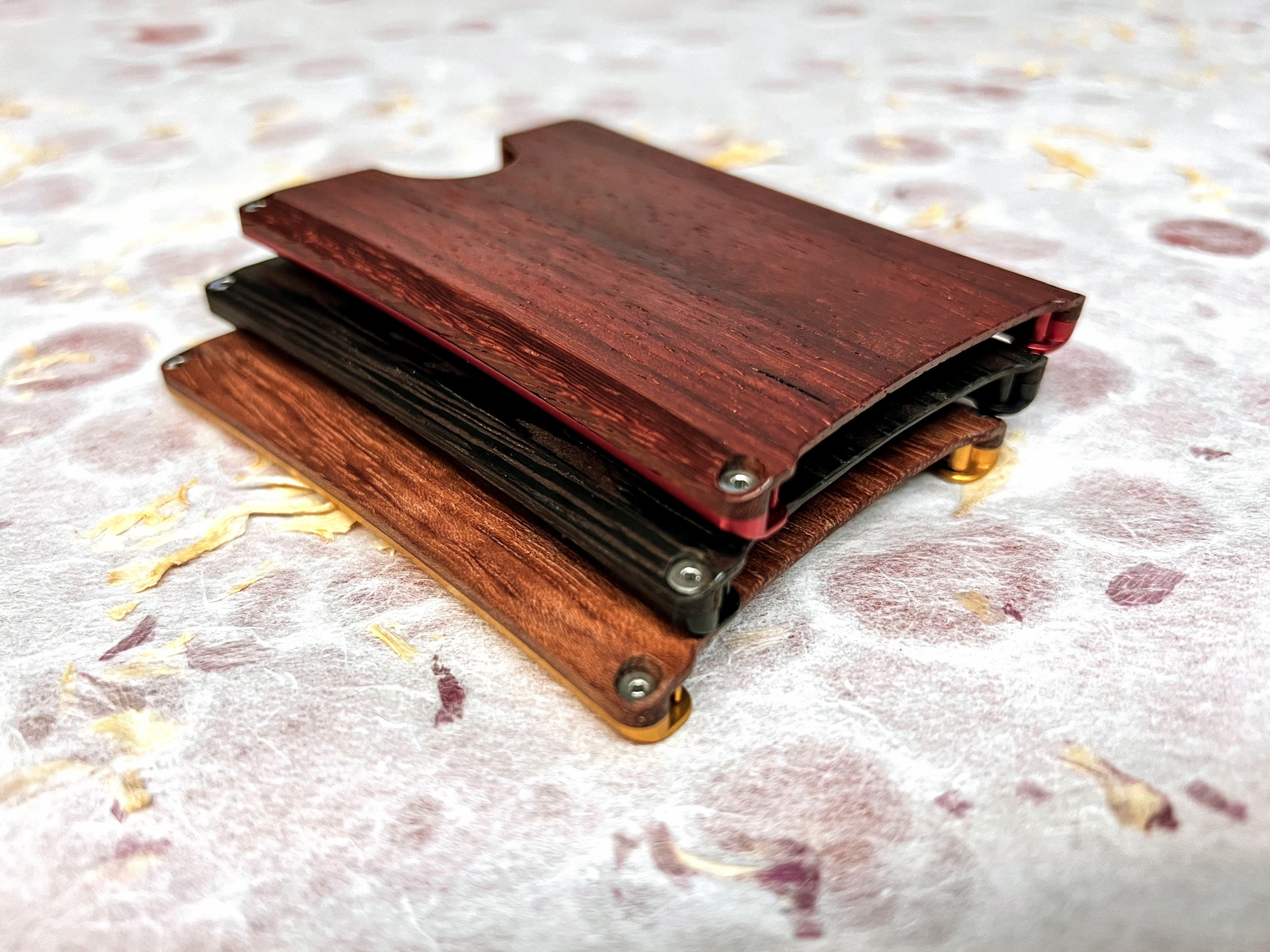 異素材の廃棄木材を組み合わせたハイブリッドなカードケースです。