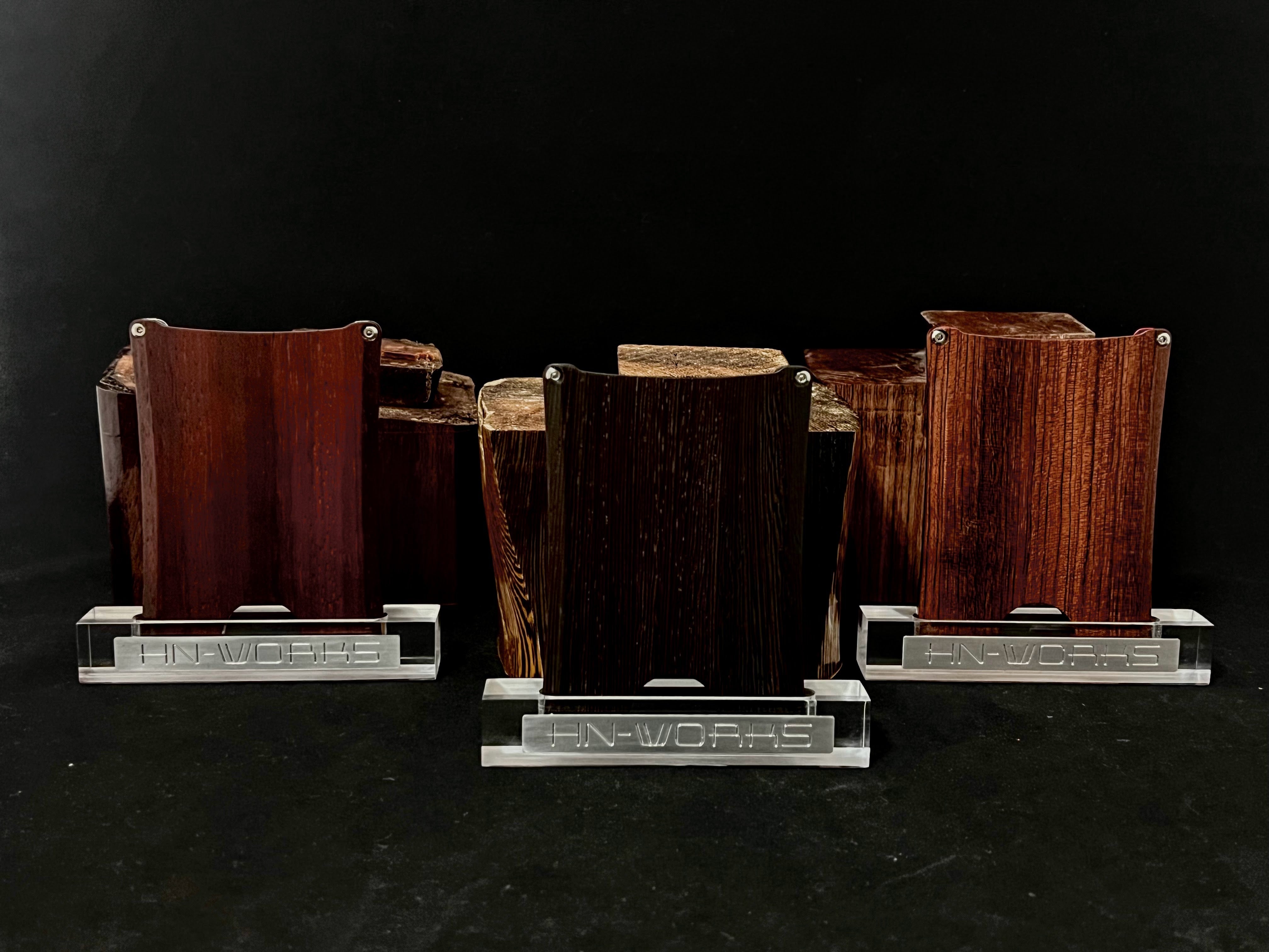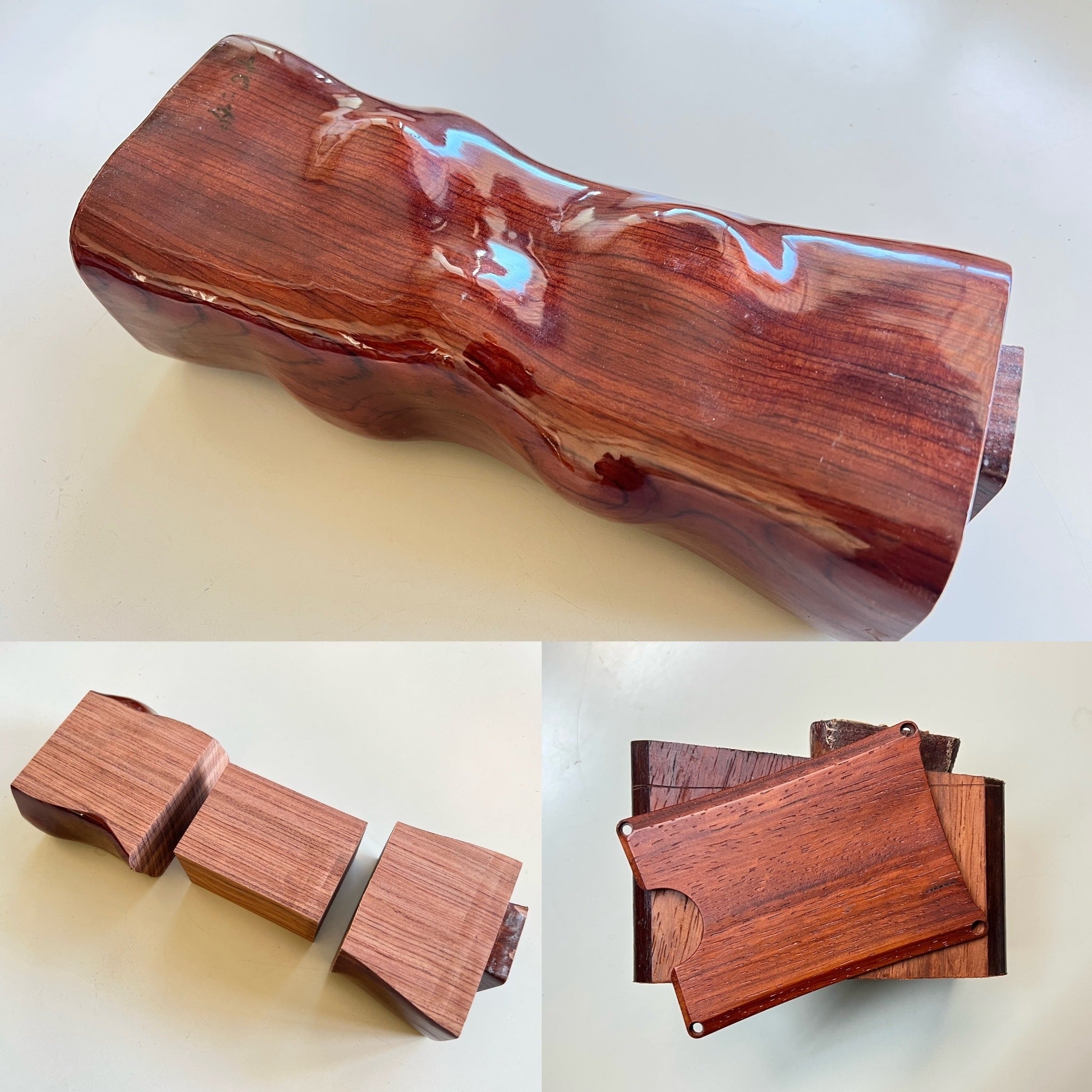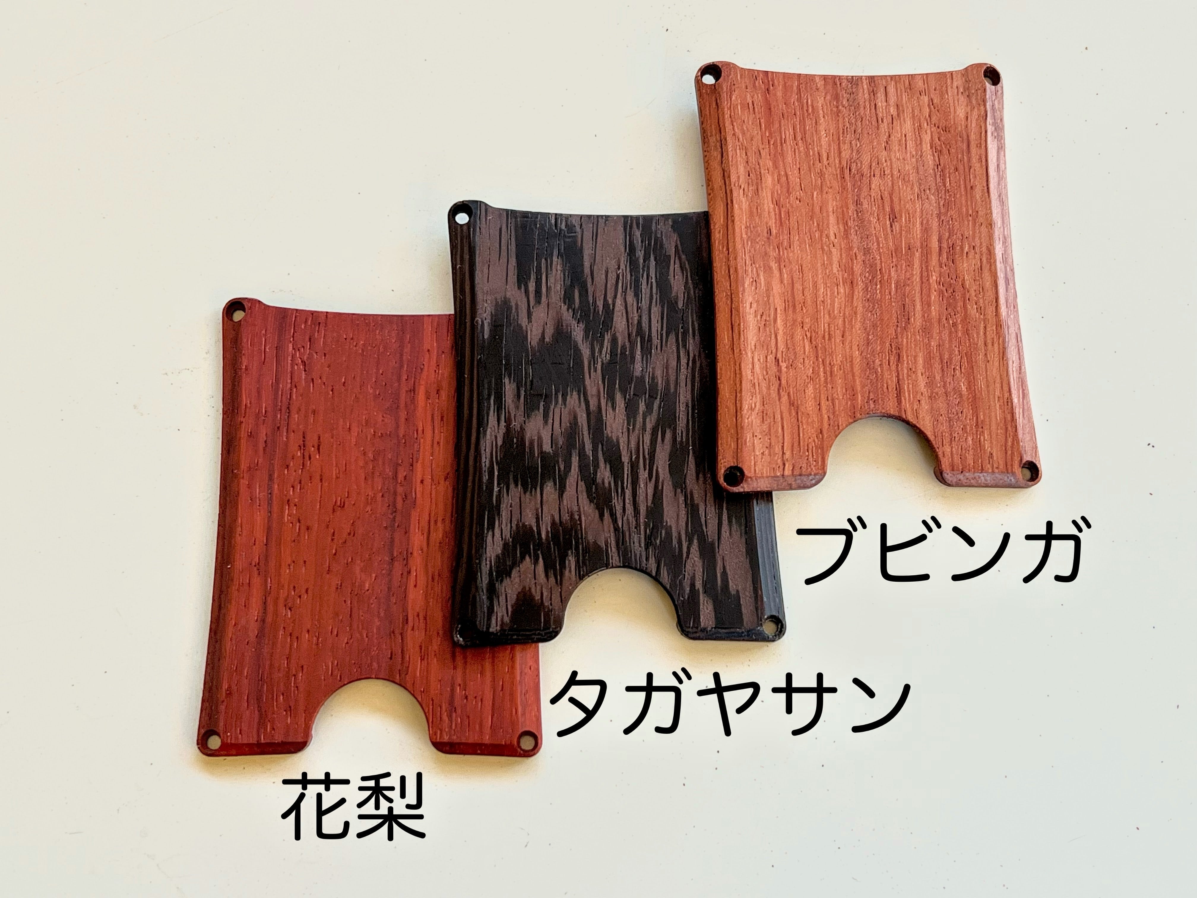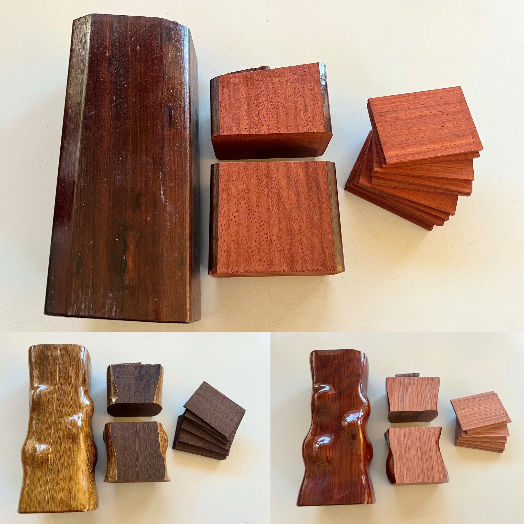 今回お届けするのは、左から花梨・タガヤサン・ブビンガの高級希少三銘木。