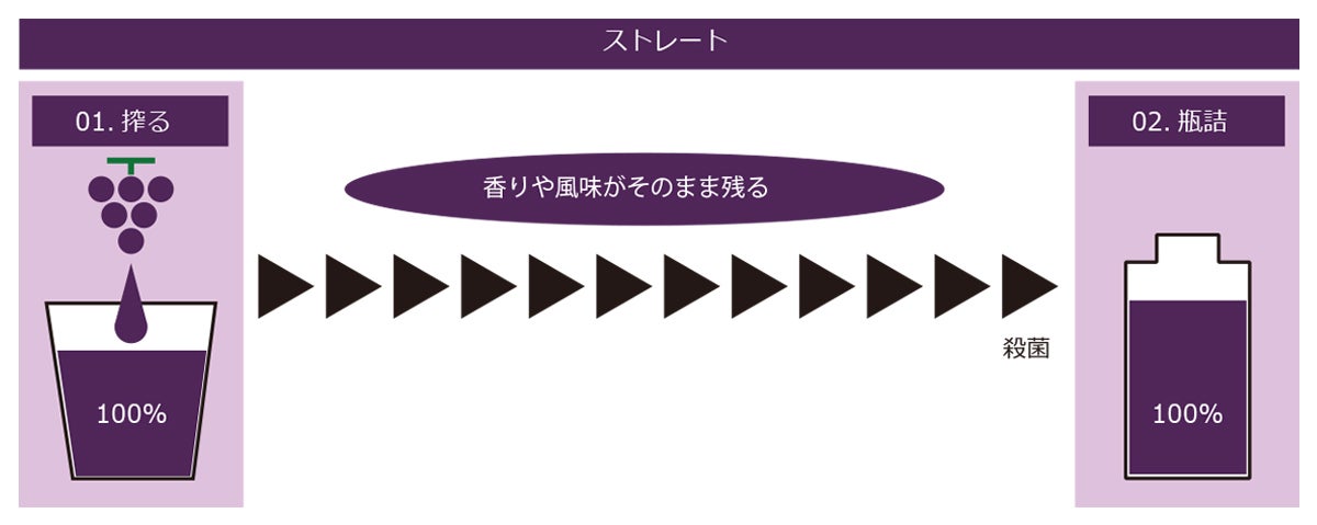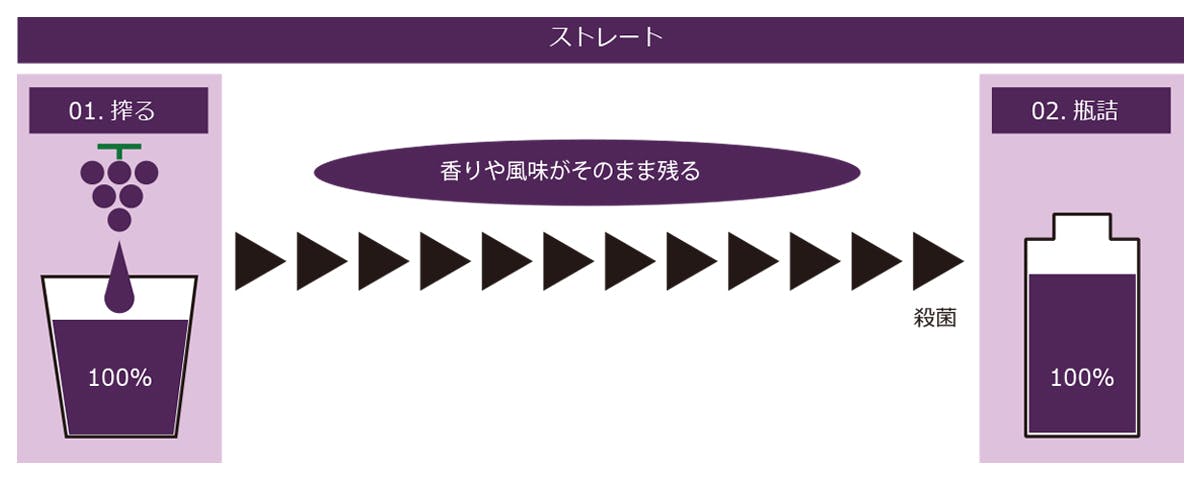 一方、ストレートは搾ったままの果汁をそのまま瓶詰します。