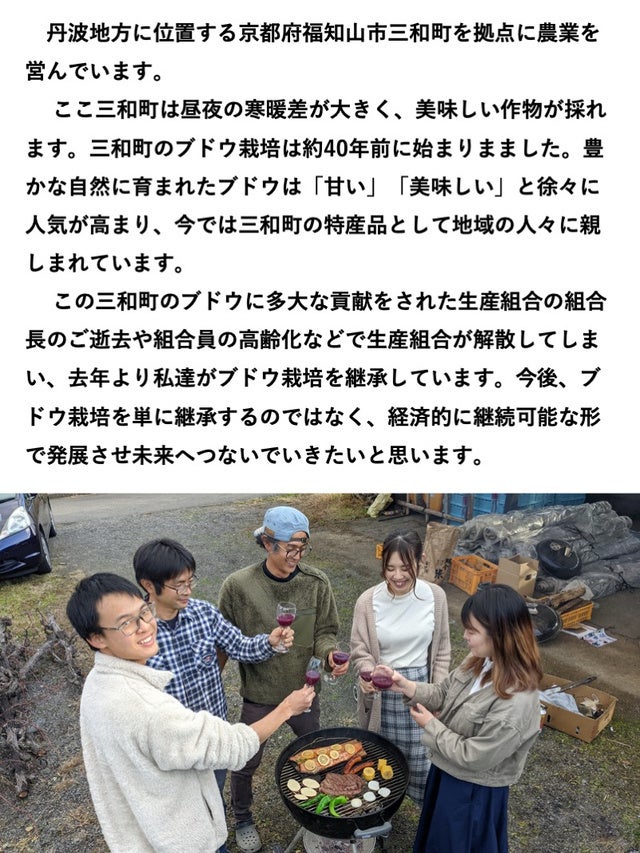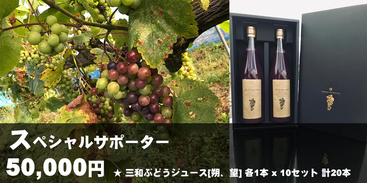 2023/03/02 21:30こんにちは。1月27日にスタートしました今回のプロジェクトですが、みなさまのあたたかいご支援をいただき、支援総額880500円、支援者数107名という形で完了することができました。目標金額である300000円を大きく上回ったことももちろんですが、NEXT GOAL と掲げさせていただきました、支援者数100人を突破できたことは何よりうれしかったです。1人でも多くの方に三和ぶどうを知っていただき、心を繋げ通わせてもらえたらという思いで取り組んでおります。福知山市をはじめ、関西、関東を中心に全国の多くの方々に知っていただき、ご支援していただけたことを励みに、今後も自然と向き合っていきたいと思っております。みなさまには今後とも、幸せの連鎖の輪を広げていくお力添えをいただけますようお願いいたします。商品到着まで今しばらく楽しみにお待ちください。Instagram(season_miwa)にて、普段の様子や最新情報等を発信しております。よろしければフォローお願いいたします。最後にあらためて、ご支援いただきありがとうございました。今後とも株式会社Seasonをよろしくお願いいたします。 もっと見る残り3時間あまりとなりました。