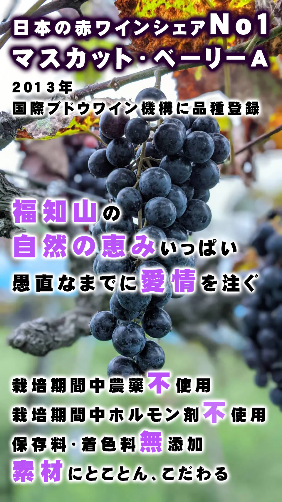 普通のぶどうよりおよそ二か月近く長い間、樹の上でじっくりと熟していきます。
