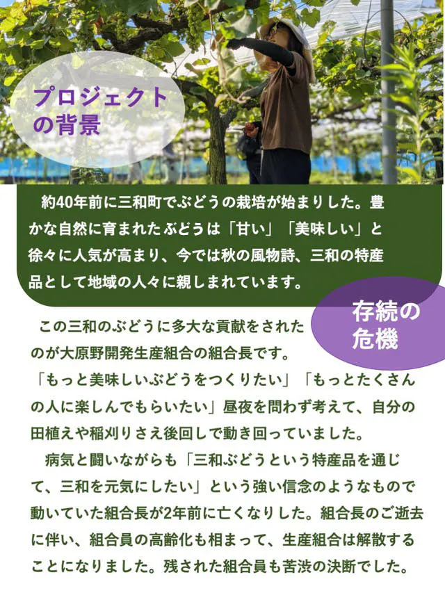 一人でも多くの方に、ぶどうを通じて心を繋いでもらいたいくてNEXT GOAL 『総支援者数100人』を目指します!