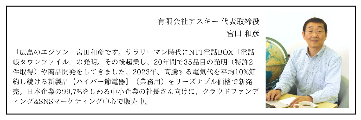 そんな中、ハイパー節電器という発明を大学の友人から話をいただき、これは今すぐ日本中の電気料金高騰で悩む方に届けなければいけないという使命を感じ、このCAMPFIREクラウドファンディングを皮切りに広めていくことを決意しました。