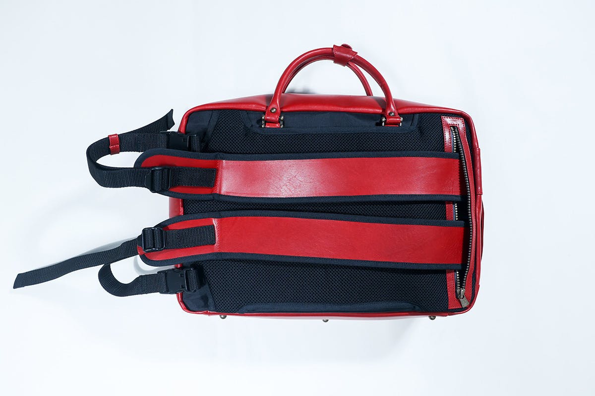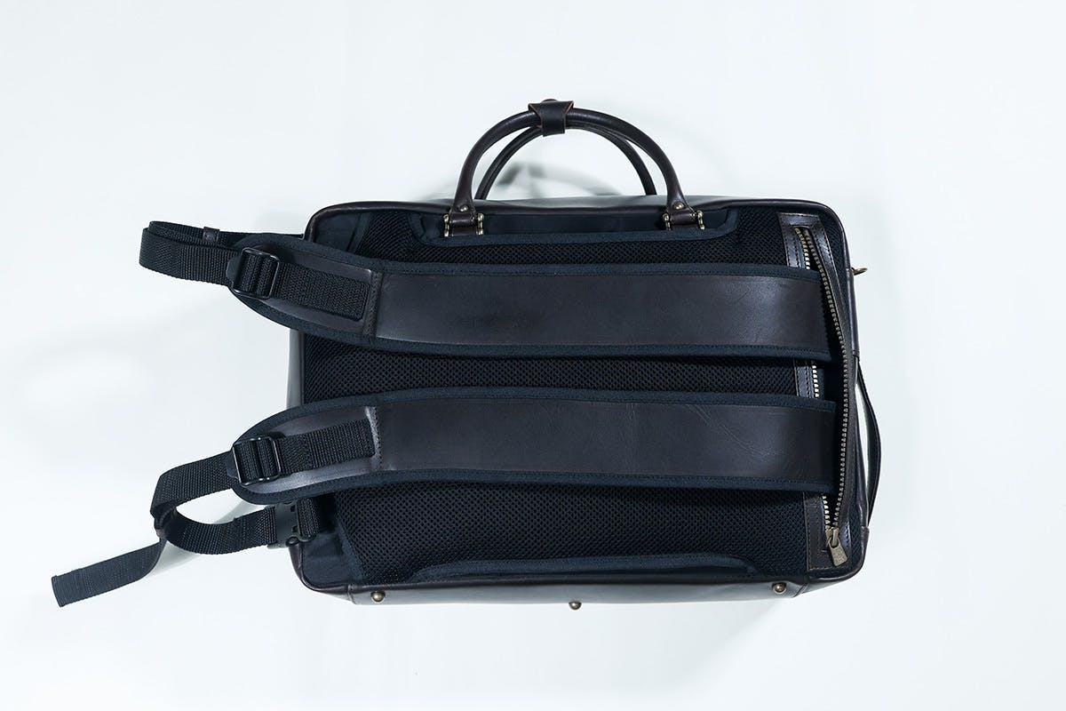第一に、このバッグがあれば、バイクで商談に直行することも容易です。背面にリュック用ベルトが収納されているので、バックパックとしてお使いいただけます。