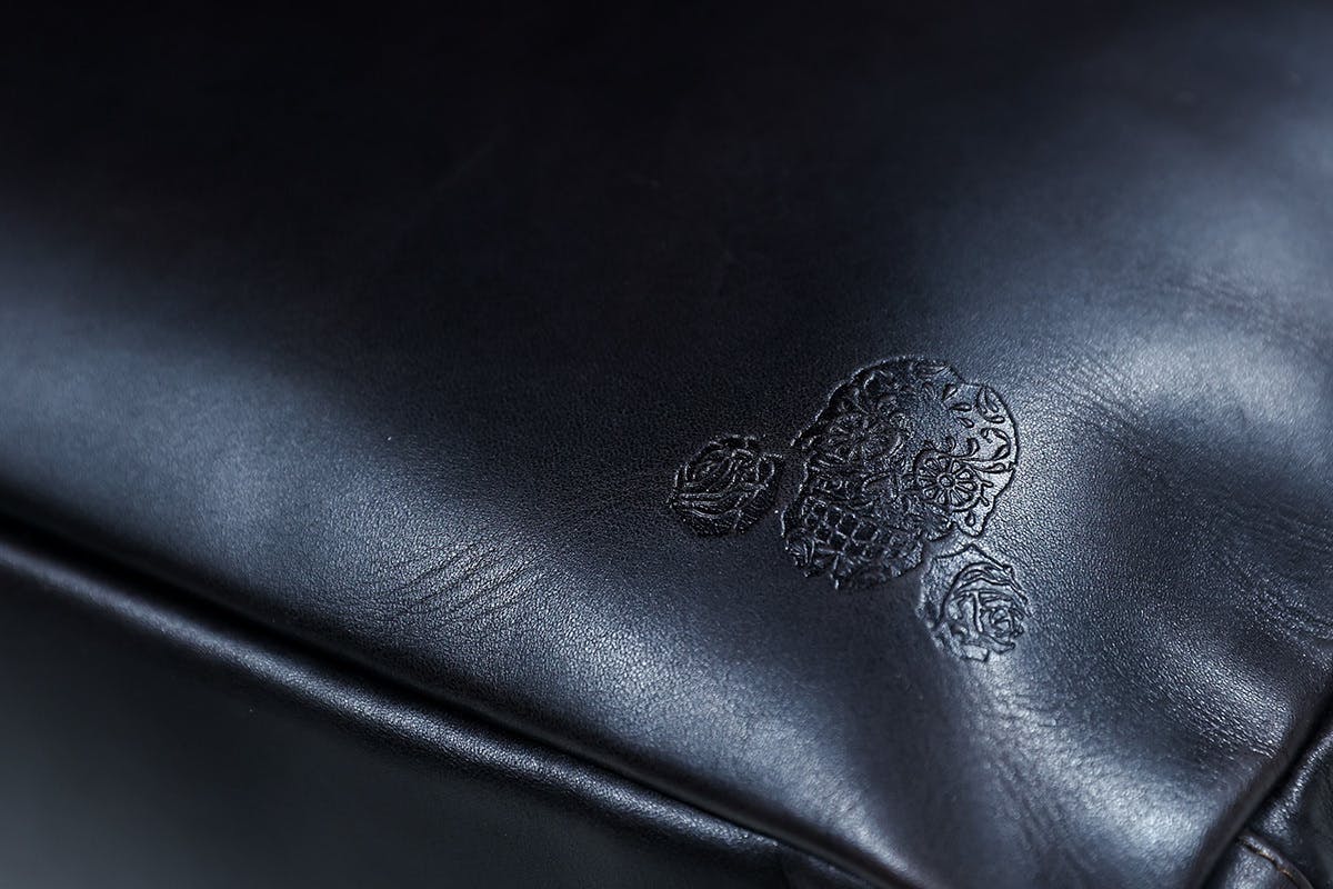 バッグの全体的なデザインは大人のシンプルな雰囲気です。そこにちょっとしたスパイスとして、ブランドモチーフのメキシカンスカルをさりげなく搭載。