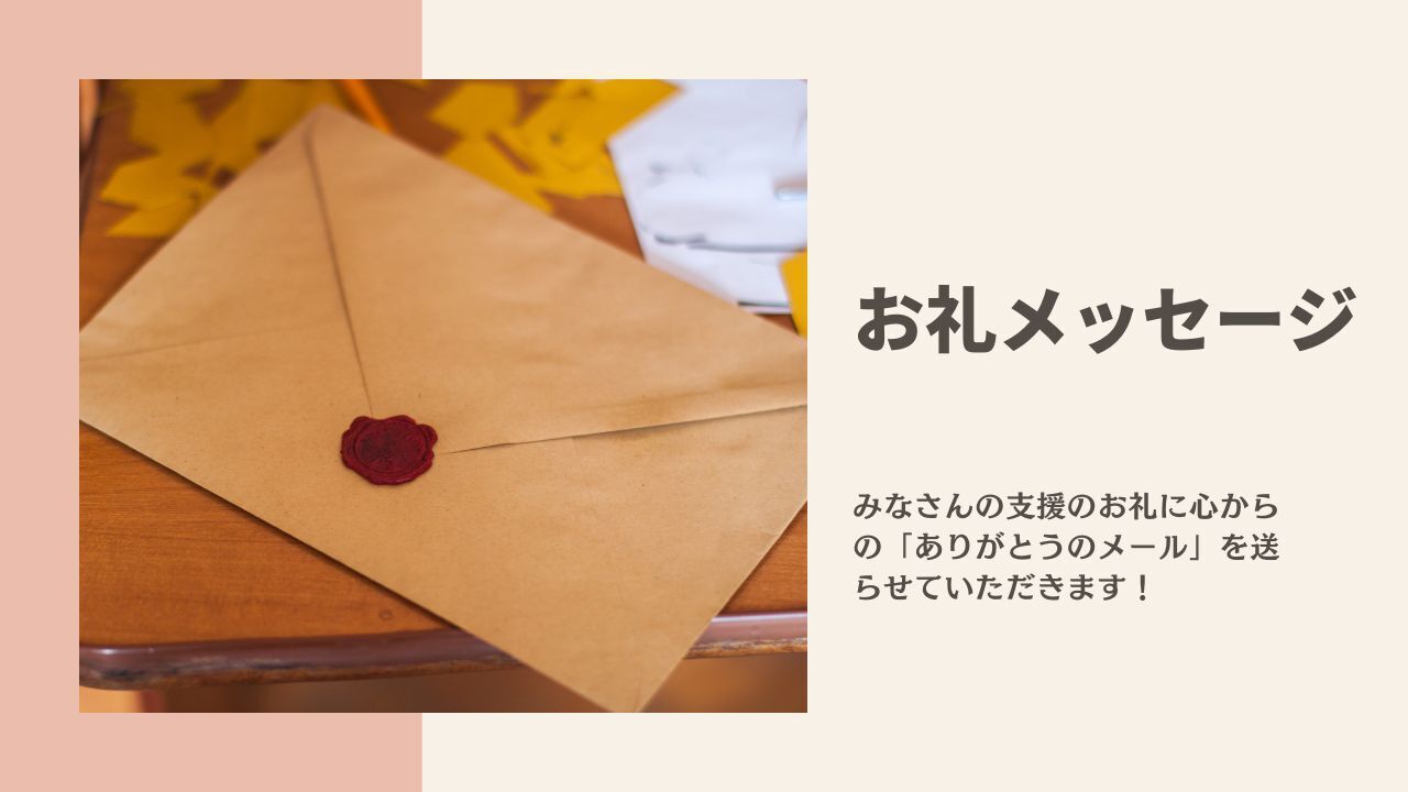 みなさんの支援のお礼に心からの「ありがとうのメール」を送らせていただきます!