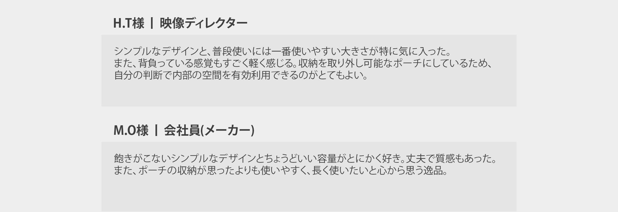 ・利用シーン:強度の高い生地によくある独特な模様等がなく、ビジネス、プライベートどちらにもなじみやすい質感を実現