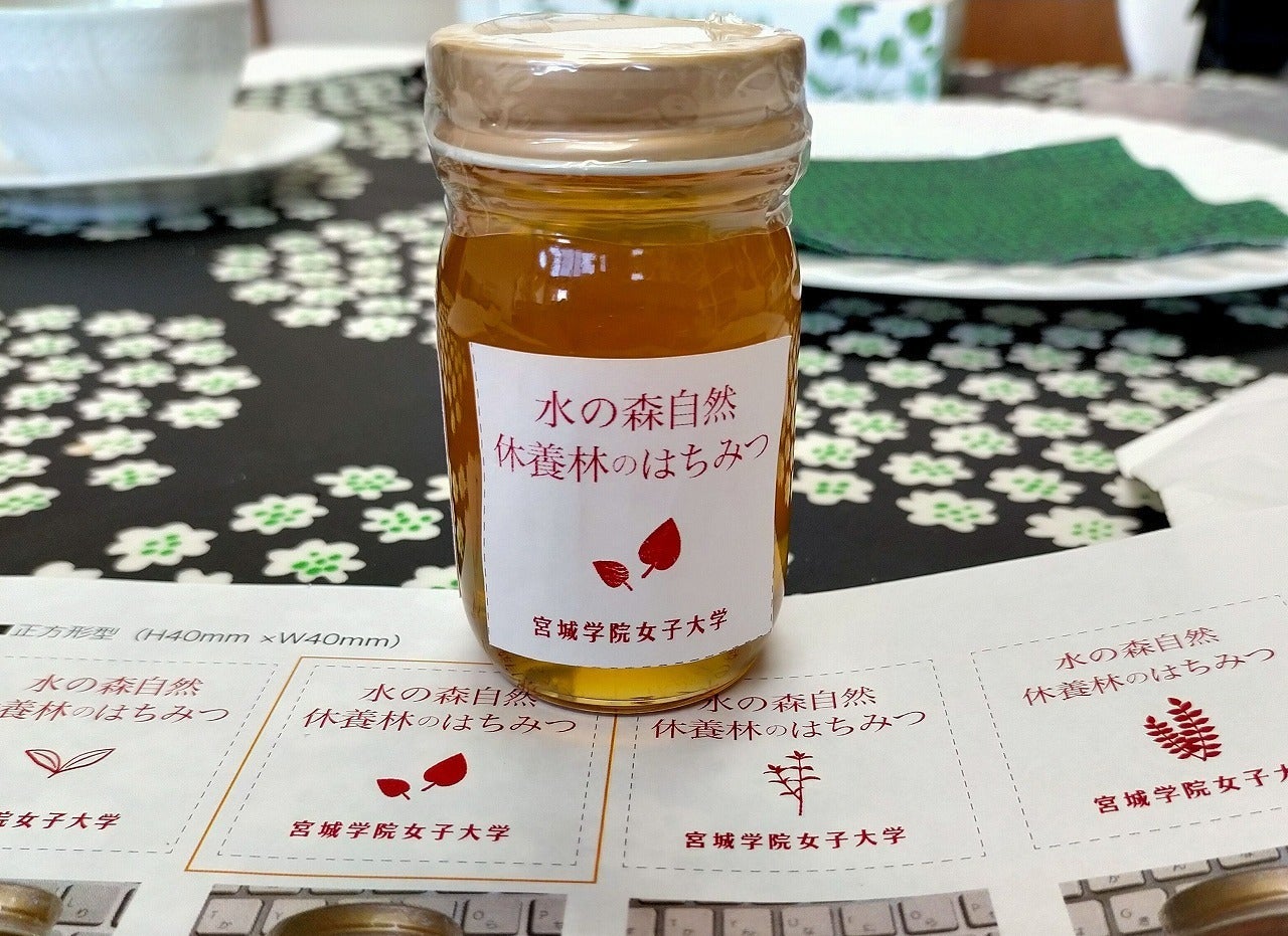 宮学キャンパスで収穫したはちみつは、その豊かな自然の恵みなのだという意味を込めて、私たちは「水の森自然休養林のはちみつ」と名付けました。