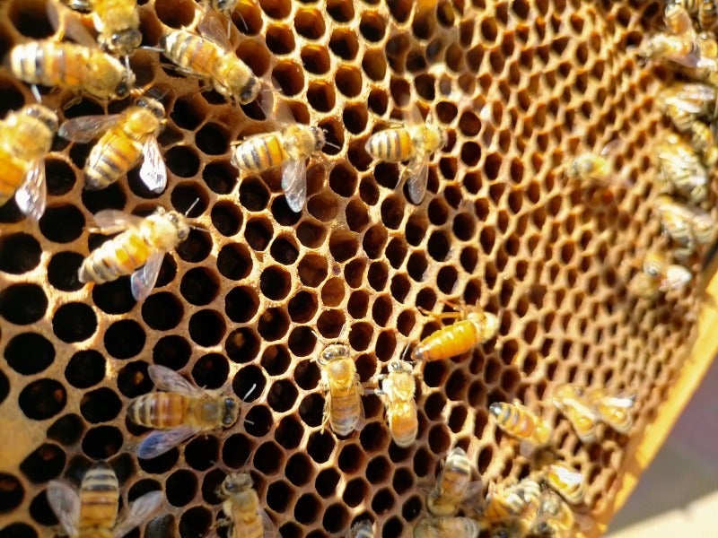 そして私たちが育てているのは、野生に近いため手が掛からない日本ミツバチではなく(趣味で養蜂をなさる方の多くはこちらです)、家畜化が進んだ西洋ミツバチです。西洋ミツバチは、うまく育てれば多くの蜜を集めてくれますが、人間が相当にお世話をしてあげねばなりません。冬眠から覚めたばかりの花が少ない季節は巣箱に餌として花粉を入れてあげたり、糖蜜(砂糖水)を補充してあげたり……といったサポートや、ミツバチの天敵であるスズメバチへの対策も必要です。