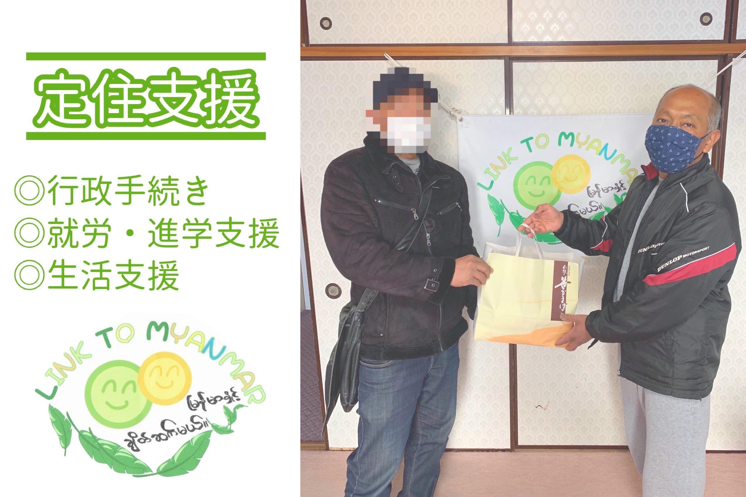 在日ミャンマー人の方への定住支援の具体例としては、入管や役所での書類申請支援、病院や買い物への同行、就労・進学を目指す方へは面接の同行や願書の作成支援なども行っております。日本へ来たばかりの方に限らず、日本にしばらく住んでいる外国人の方でも日本語でのコミュニケーションに苦手意識を持っている方は多く、中には日々の買い物にも苦労する方がいます。当会では言語の壁を少しでも払拭するため、上述の定住支援に加え、在日ミャンマー人向けの日本語レッスンも行っております。