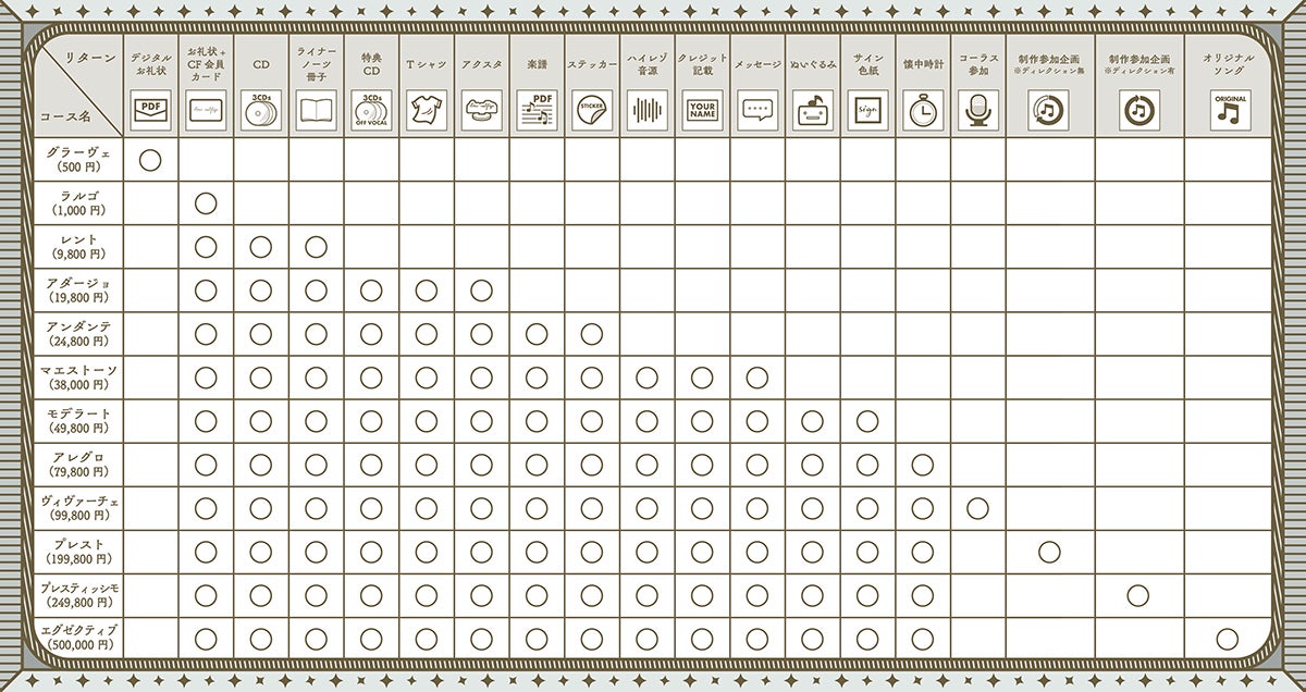 CD(3枚組)は一般頒布を予定していますが、オフボーカルCD3枚組を含むその他リターン品に関しては、CF限定となります。