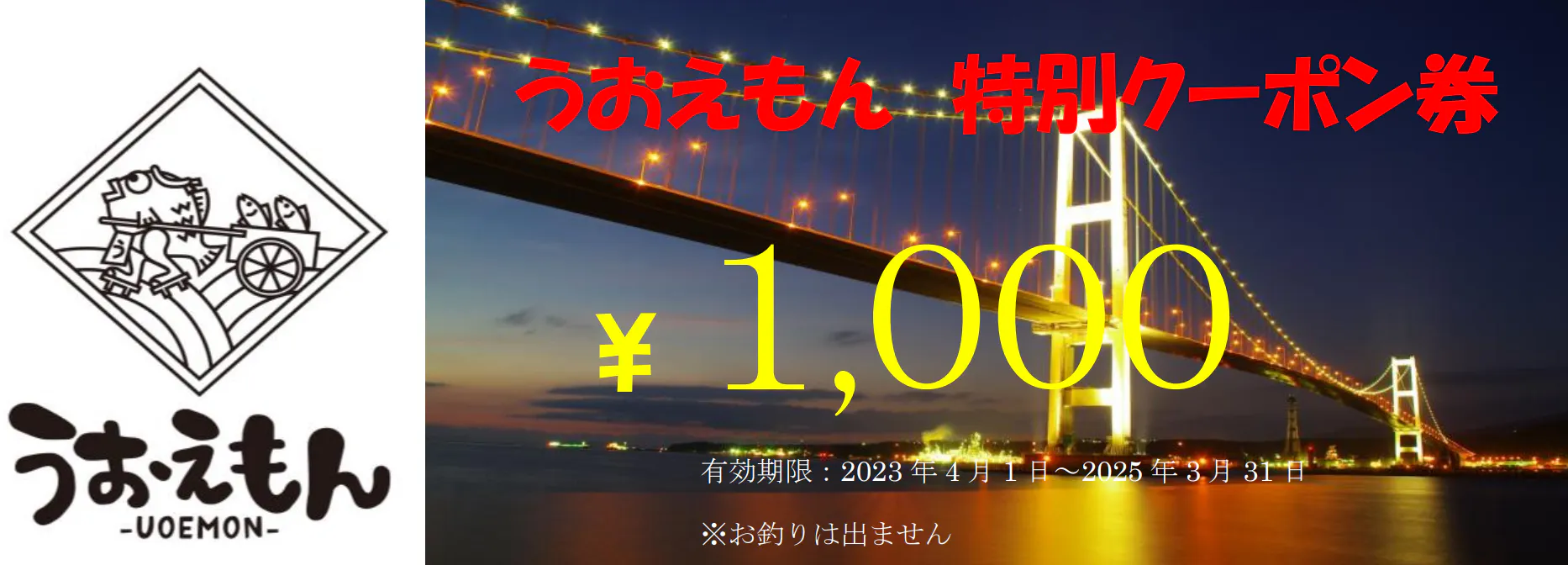 ・うおえもんで使用可能な1000円分の特別クーポン券を送らせていただきます。