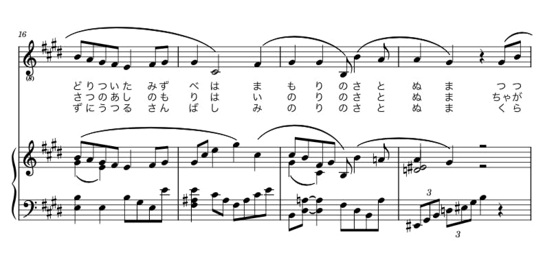 ここからは音楽の専門的な話しなので、少し難しいと思いますが、音楽的な分析を行うことで、旋律や和声、リズムなどが、歌詞を伴って、どのように館林を表現しようとしているのかを理解していただけると思います。