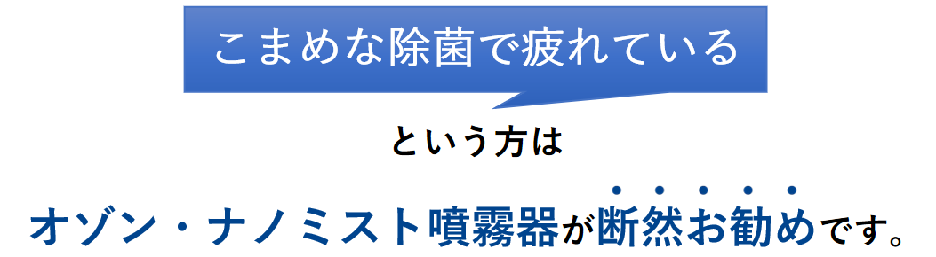家庭の他、オフィスや店舗、学校や病院など、除菌作業の負担が大きくなっているのが現状です。
