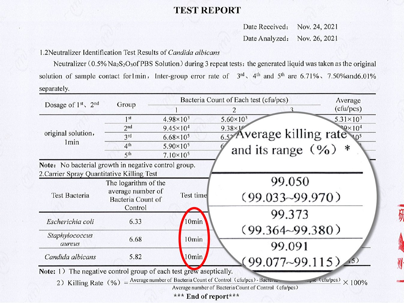 今回発表した「オゾン・ナノミスト噴霧器」は、品質テストおよび除菌効果テストに合格しておりますので、ご安心ください!