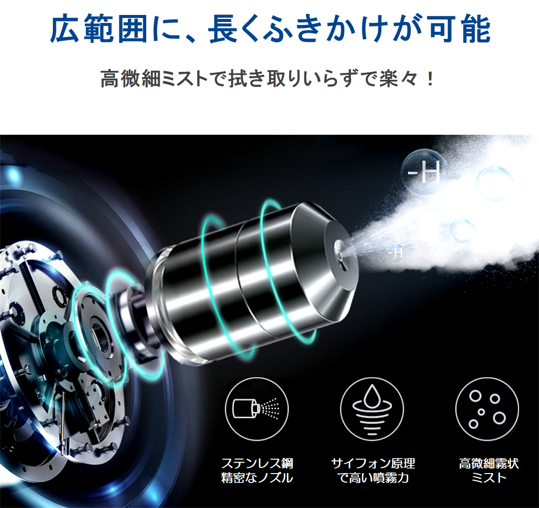 ■ ナノレベルのミストで広範囲の除菌が可能に!