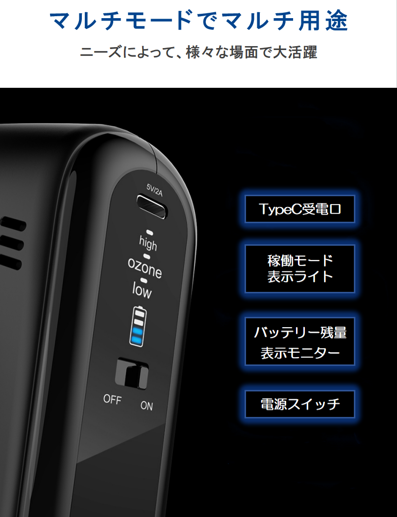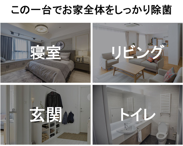 リビングやキッチン、寝室やオフィスなど、必要な場所に自由に持ち運びながら、除菌できます。