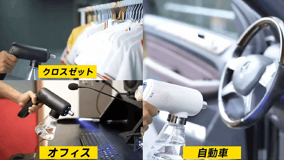 また、毎日着ている衣類、毎日使っているPCやデスク、毎日乗っている車の除菌にも大活躍です。