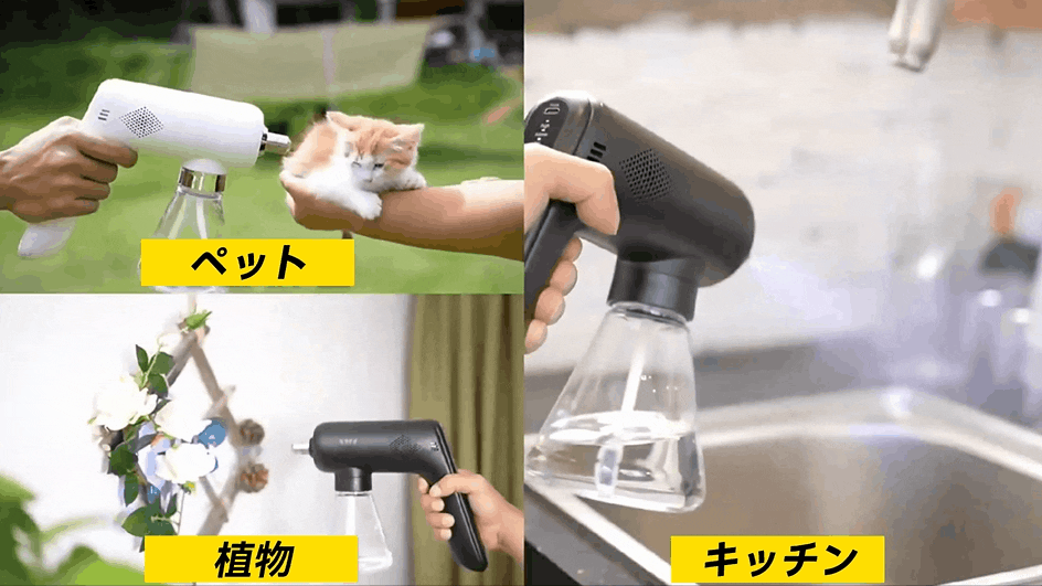 ほこりや雑菌がたまりやすい飾り物・キッチン、また一緒に暮らしているペットの除菌にも最適です。
