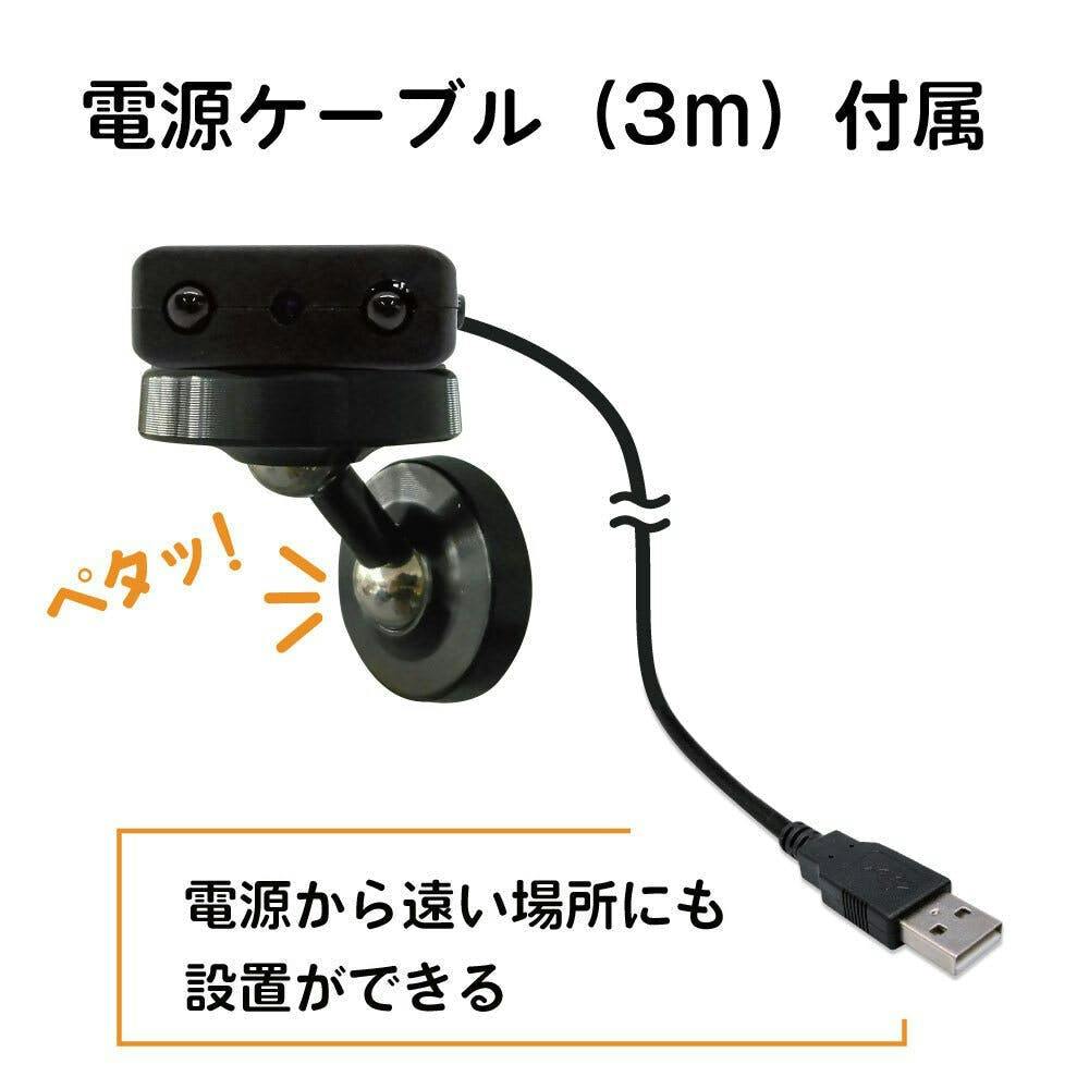 カメラとスタンドは磁石で、スタンドは両面テープで取付可能。スタンドは自由にカメラ方向を変更できます
