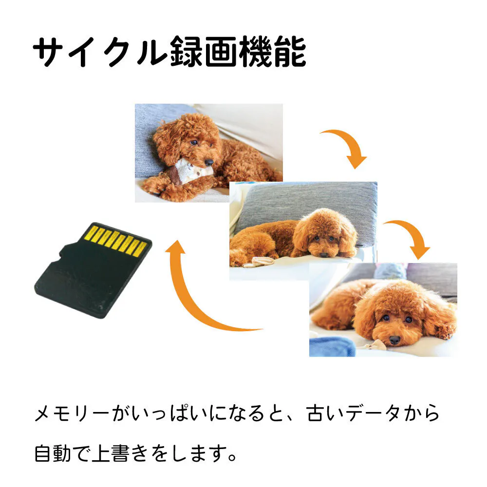 フルハイビジョン(1080P)画質で、音声録音機能付き。更に最大1年間の長時間録画ができる