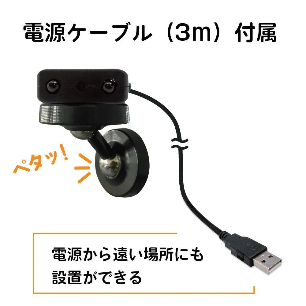 超小型軽量だから取付け場所を選びません。”ペタッ”と貼ってあとは電源を入れるだけ