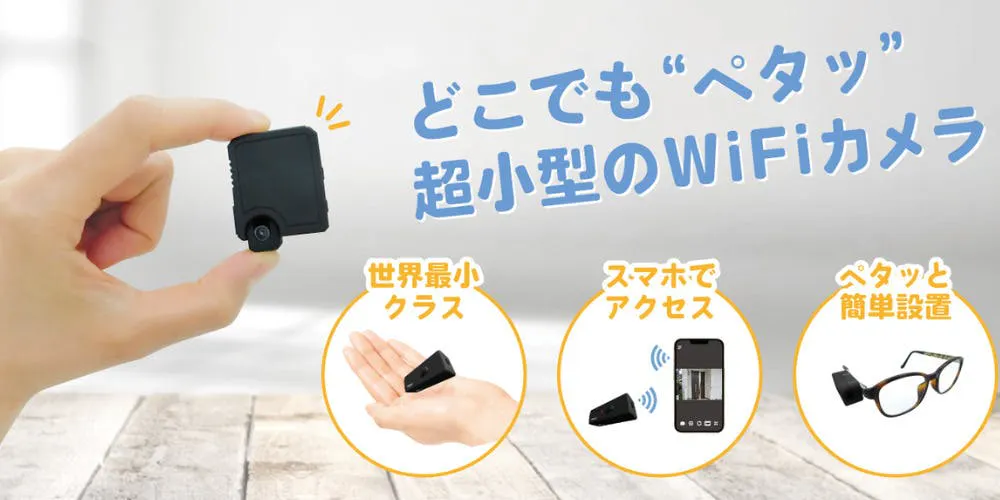 超小型軽量だから、どこでも貼付け可能な簡単設置のペタカメ。
