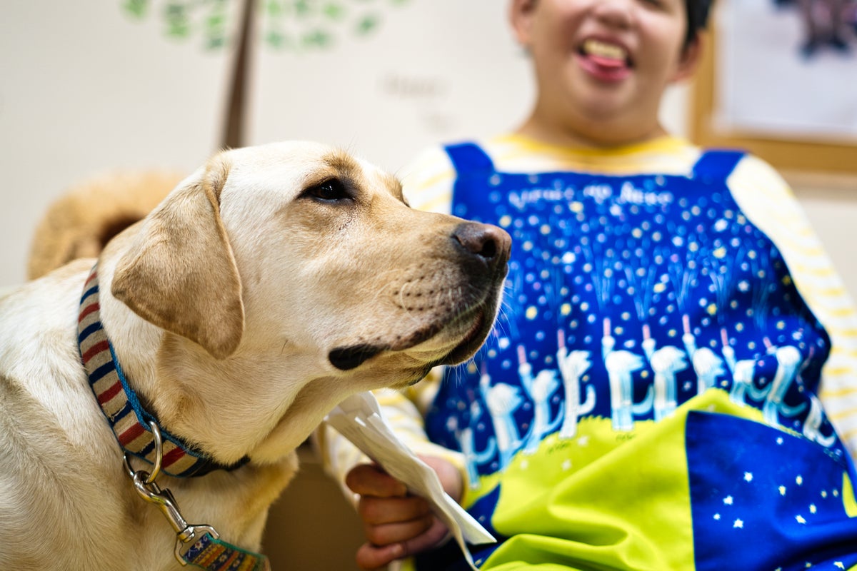 リリアルはセラピードッグとしてもとても優秀でした。2022年夏に栃木市図書館で開催された「読書介助犬体験会」でも大きな犬に慣れていない子供たちの横に寄り添って緊張を和らげてくれたり、小さい子供が身体を乗せてきても嫌がることもなく、しっかり受け止められるような優しいセラピードッグでした。