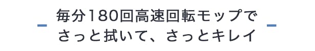 黒ずみ汚れやベタベタな皮脂汚れはもちろん、牛乳のような液体汚れも掃除出来ます。!毎分180回高速回転する2つの大面積モップは、手で擦り落とすように一拭きでツルツルピカピカに!素足派に嬉しい、360日気持ちいい床へ!