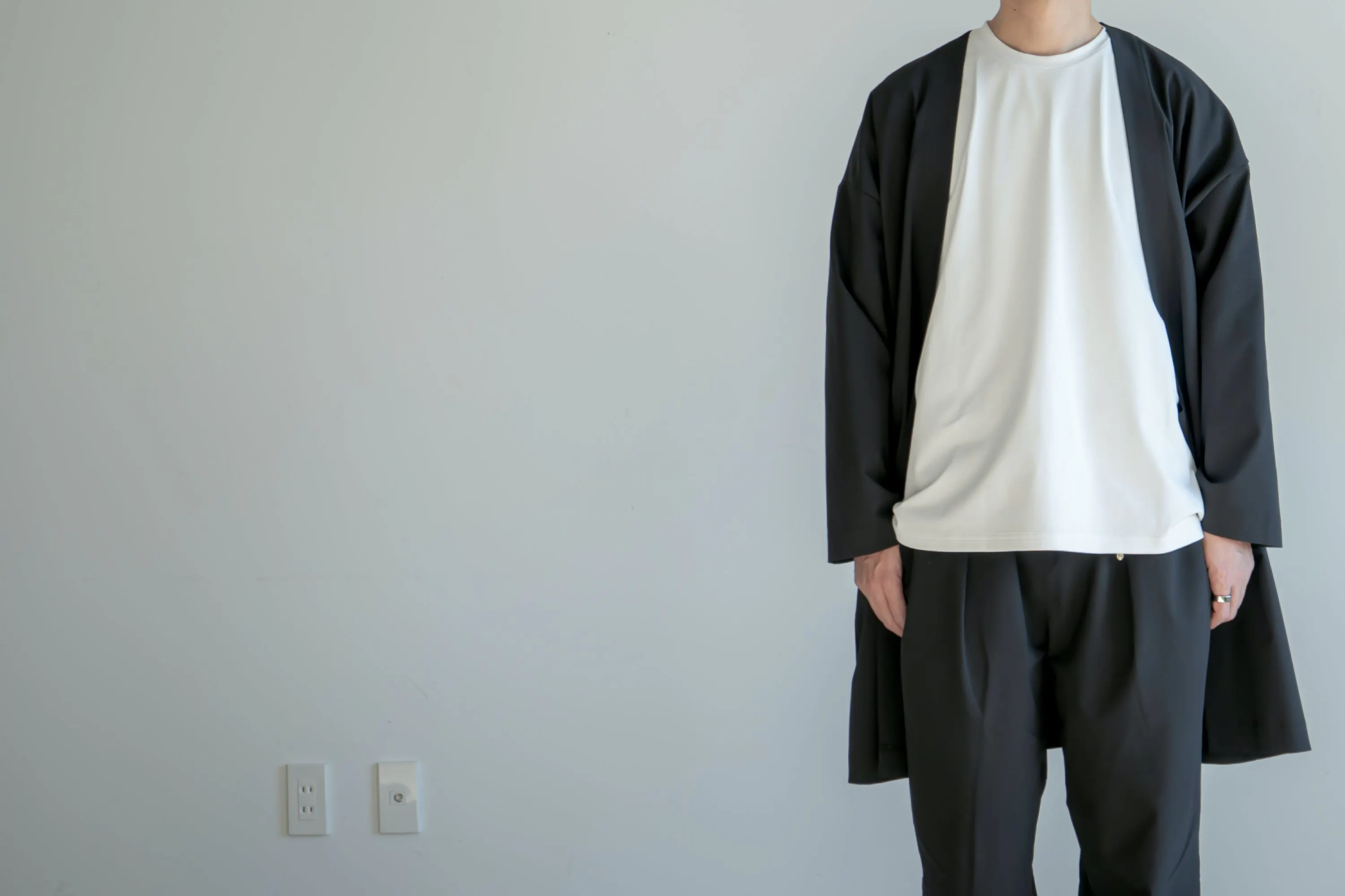 今回のMinimalist Long Jacketは、まさに羽織と同等の着丈にしています。