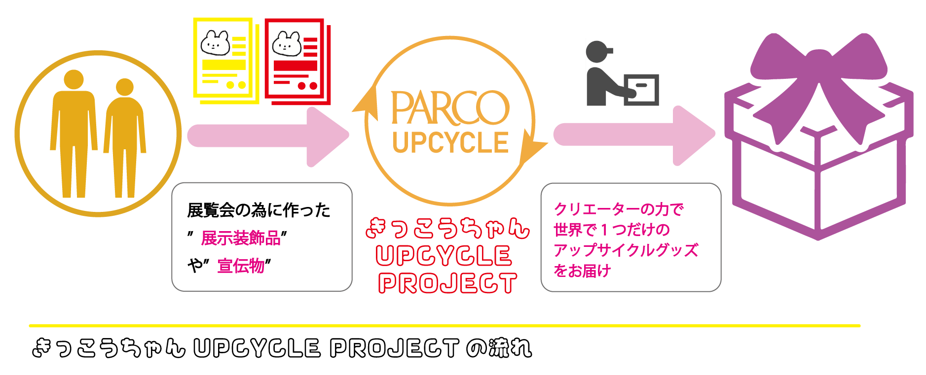 今回、仙台発のきっこうちゃんと、新たなカルチャーを作り続けるパルコ様と、熊本の就労支援事業所で働くみなさんと、私たちとが繋がって、アップサイクルプロジェクトに取り組めることがとても嬉しいです!