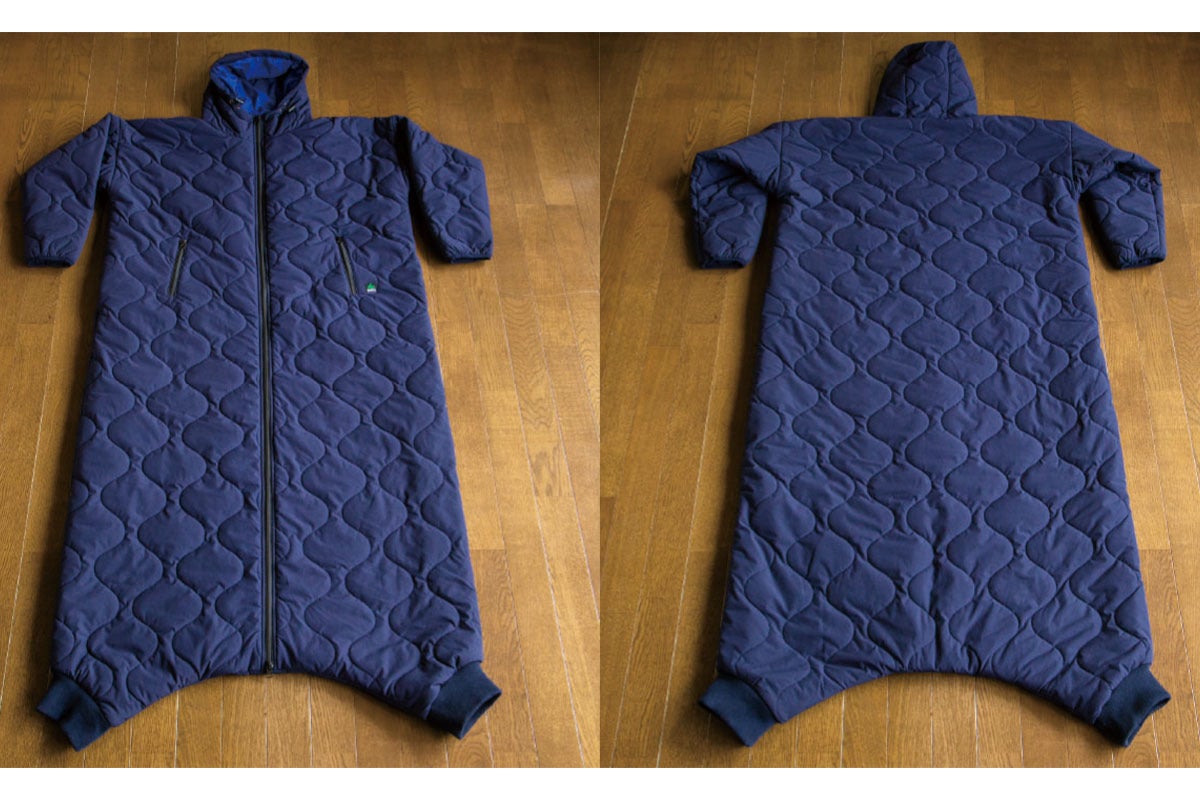 今回の第2弾ではジッパーを裾まで伸ばしました。ジッパーが下からも開くので足を出し入れでき動きやすさが向上しました。トイレにも対応できるようになりました。
