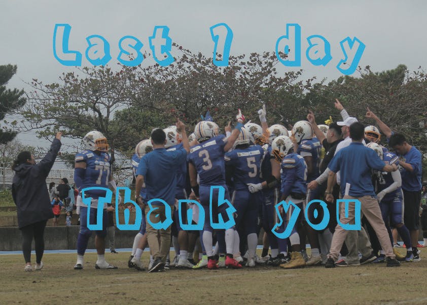2023/01/30 12:30いよいよ最終日です。最後の最後までご支援お待ちしています!社会人スポーツのプロ化。有名なところで、野球、サッカー、バスケット。最近では、卓球やハンドボール。陸上などでもプロ宣言なんていうのもあります。実業団と言う会社の広告塔的な活動も今後少なくなっていくでしょう。アメリカンフットボールのプロ化。リーグとしてのプロ化はまだまだ先でしょうが、今回のファンディング。試合だけでなく、企業へのCM出演、イベント開催(参加)等々。地元ファンを増やし、お金を頂くことに恥じない行動をし、チームのファンを増やす。そういったことの積み重ねがプロ化への道なのではと思っています。アメリカンフットボールそのものをメジャーにすることも必要ですが、選手、スタッフ、監督、コーチ、全員が憧れの対象になれるように日々努力すること。そのことの重要さを改めて実感したのが、今回のファンディングと首里城ボウルでした。2月より2023年の活動を再開します。今年チームはX2を目指します。それと同時に全国の沖縄県民、アメフトファンに愛されるチームを目指していきます。また皆様にご支援をお願いする事もあると思います。また応援するよ!友達も誘ったよ!と言ってもらえるよう頑張っていきます。終了までもう数時間ありますが。。。皆様、ご支援ありがとうございました。今後とも琉球ガーディアンライオンズをよろしくお願いいたします。 もっと見る