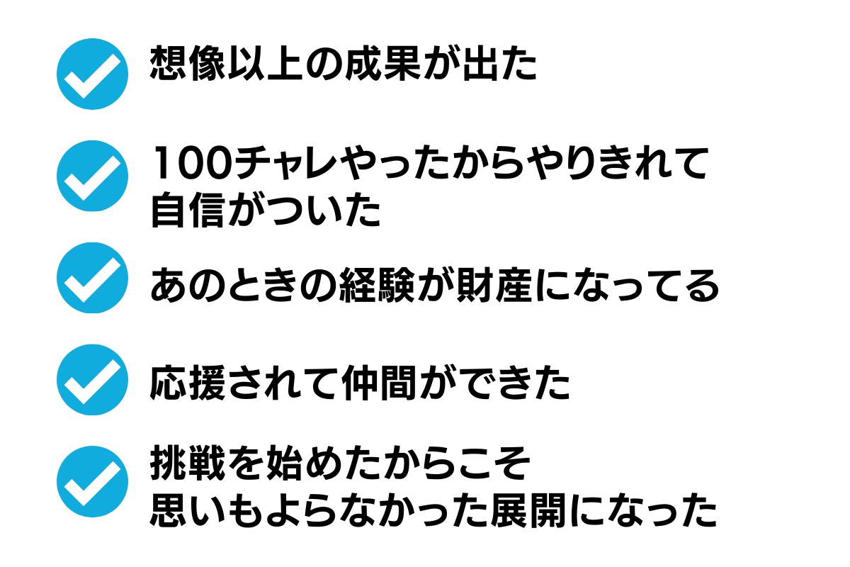 100チャレはマラソン大会のような応援が集まり、挑戦が加速、最高の自分を発揮できる場所です。