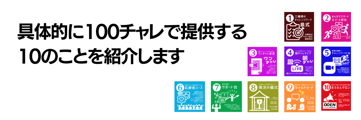 今回は、これらの100チャレプログラムを構築、仕組み化し広げていくためのチャレンジです。