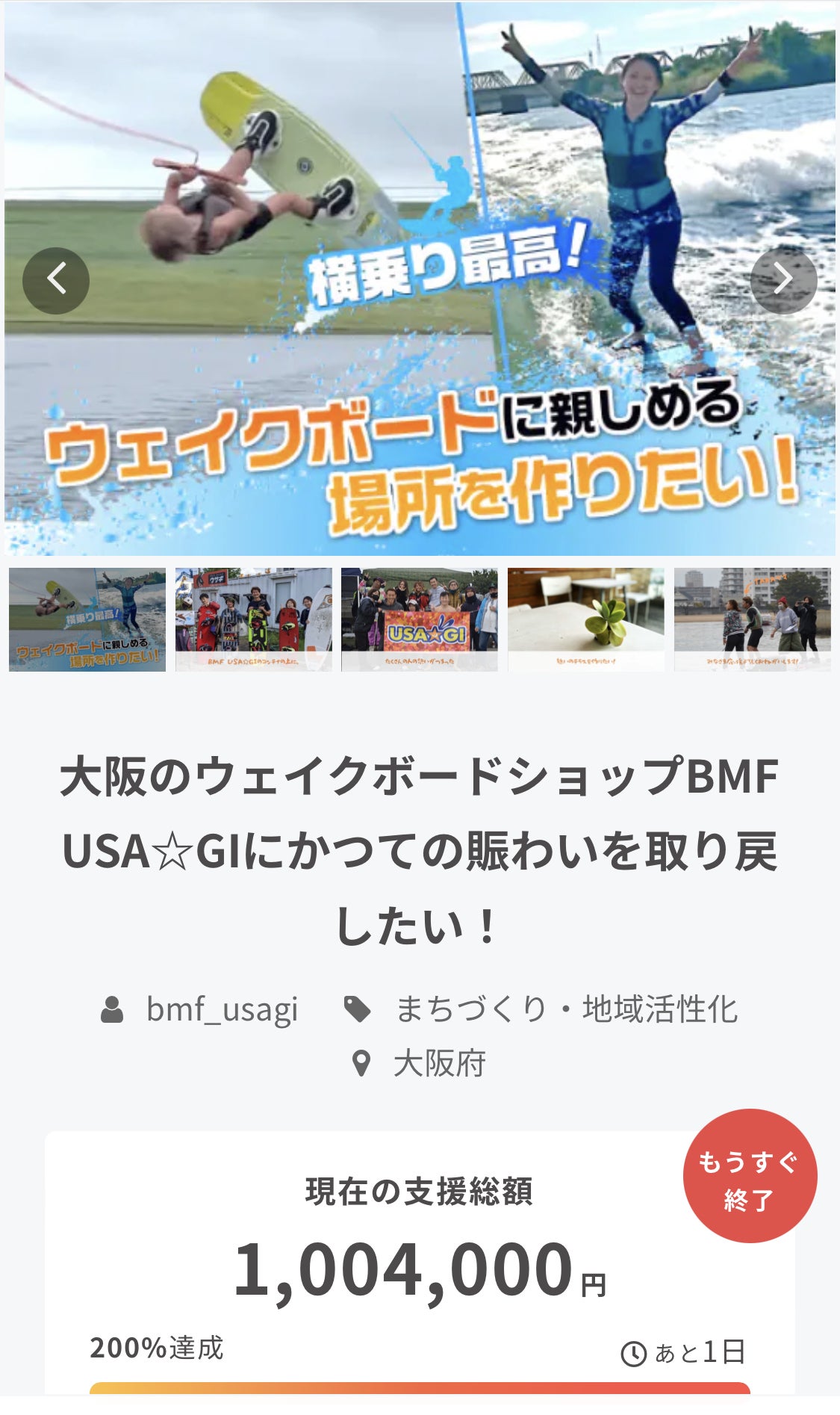 僕の想いにご賛同いただける方、「テラスができたら行ってみたい!」と思ってくれた方、「USA☆GIでウェイクボードをやってみたい!」と思っていただけた方、なによりウェイクボードが好きな方、一人でも多くの方よりあたたかいご支援をいただければ感無量です。皆様、どうぞよろしくお願いします。