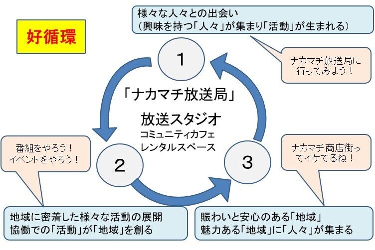 この放送局を通して、「好循環型の地域活性化」を目指します。これは、