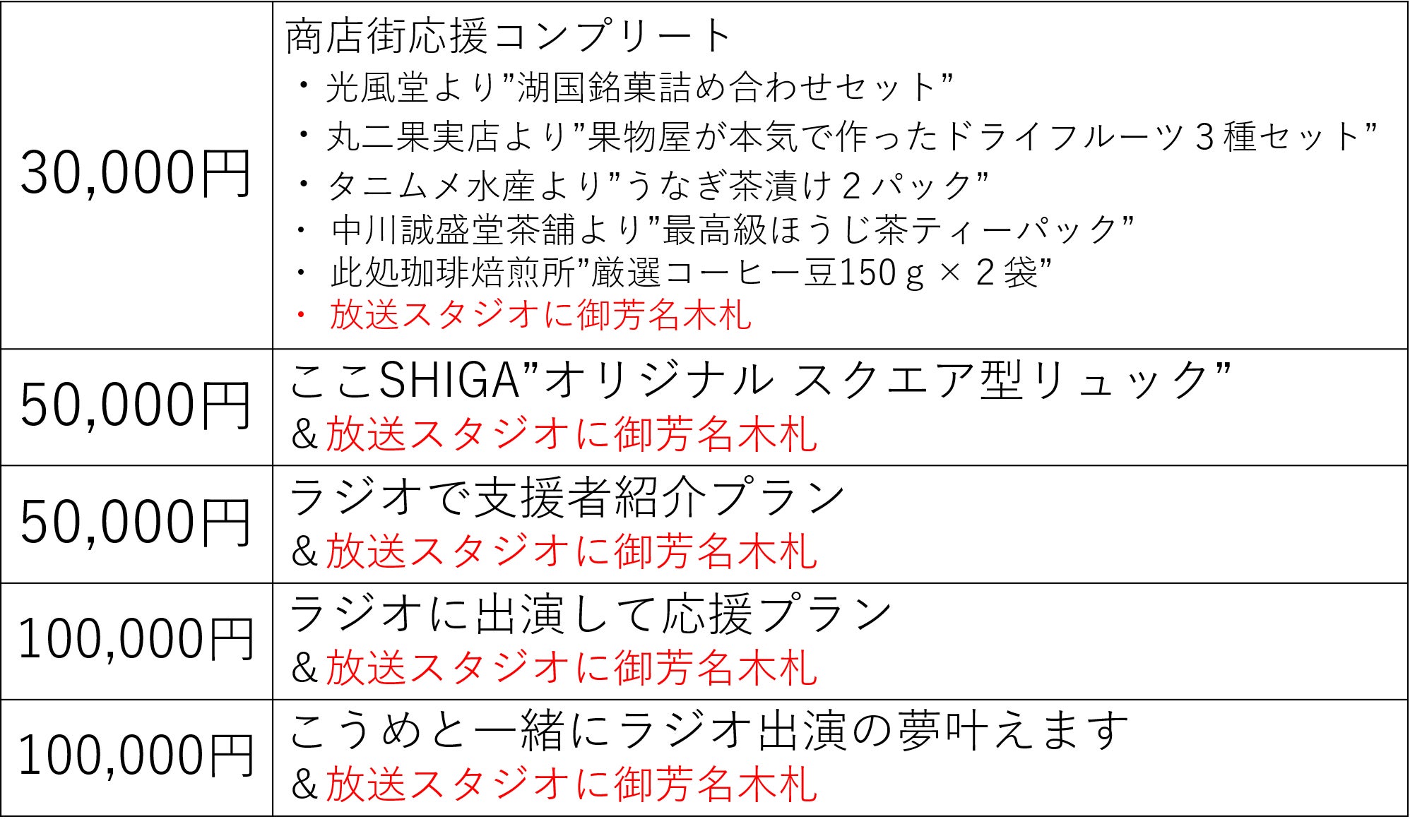 10,000円以上支援してくださった方は、放送スタジオ内に「スペシャル・サポーター」として木札でお名前を掲示させていただきます。