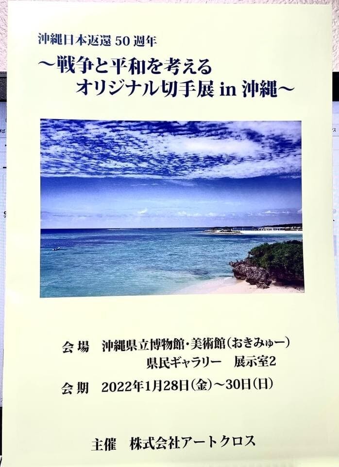 沖 縄が本土へ返還され50年を迎える2022年に、改めて戦争と平和を考 える事を目的としてのオリジナル切手展。