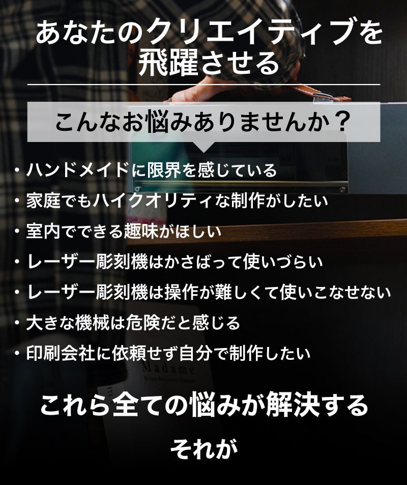 これまで、家庭でできるDIYやハンドメイド等の制作は、到底プロには及ばないツールでしか実現しないのが当たり前でした。 プロが使用するような機材は高価で大きく、設置にはそれなりの知識と経験が必要なうえ、安全管理が難しいもので、一般の家庭で扱えるものではないからです。