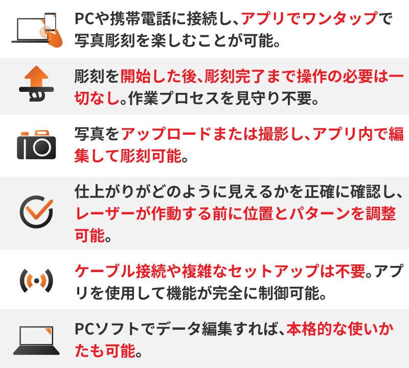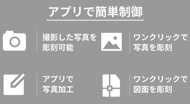 彫刻機とは思えないコンパクトな設計。持ち運びも楽にでき、プロ仕様の彫刻&切断が手軽に行えます。 一体型設計により、組み立てが不要です。